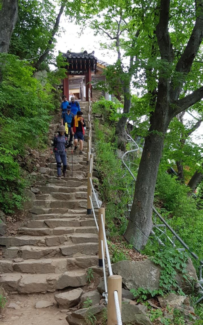 안개와 녹음에 묻힌 산속 아침을 새들이 요란하게 맞이하고 있다. 숲으로 들자 별유천지 비인간의 세계다. 족히 너 댓 시간의 거리를 벌써 내려오는 분들도 있는데, 한뎃잠을 마다하지 않고 비박(Biwak)을 하며 자연에 온전히 몸을 맡겼을 수도 있겠다. 부지런한 사람을 누가 이길 수 있겠는가? 세상에 부지런함 만큼 값지고 유익한 것도 드물지 싶다.