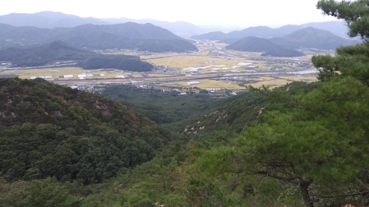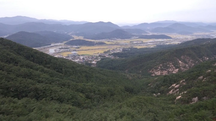 고위봉까지 500여 미터 이어진 능선에 들어서면 앞을 가리던 숲이 걷힌다. 용장리 앞 들판 너머로 망산 단석산 벽도산 등 가까운 산군 뒤로 겹겹 산줄기들이 파도처럼 밀려오고 밀려가듯 아득하다. 그 산군들은 멀찍이서 옥좌에 앉은 지존을 옹위하고 있는 것처럼 보인다.