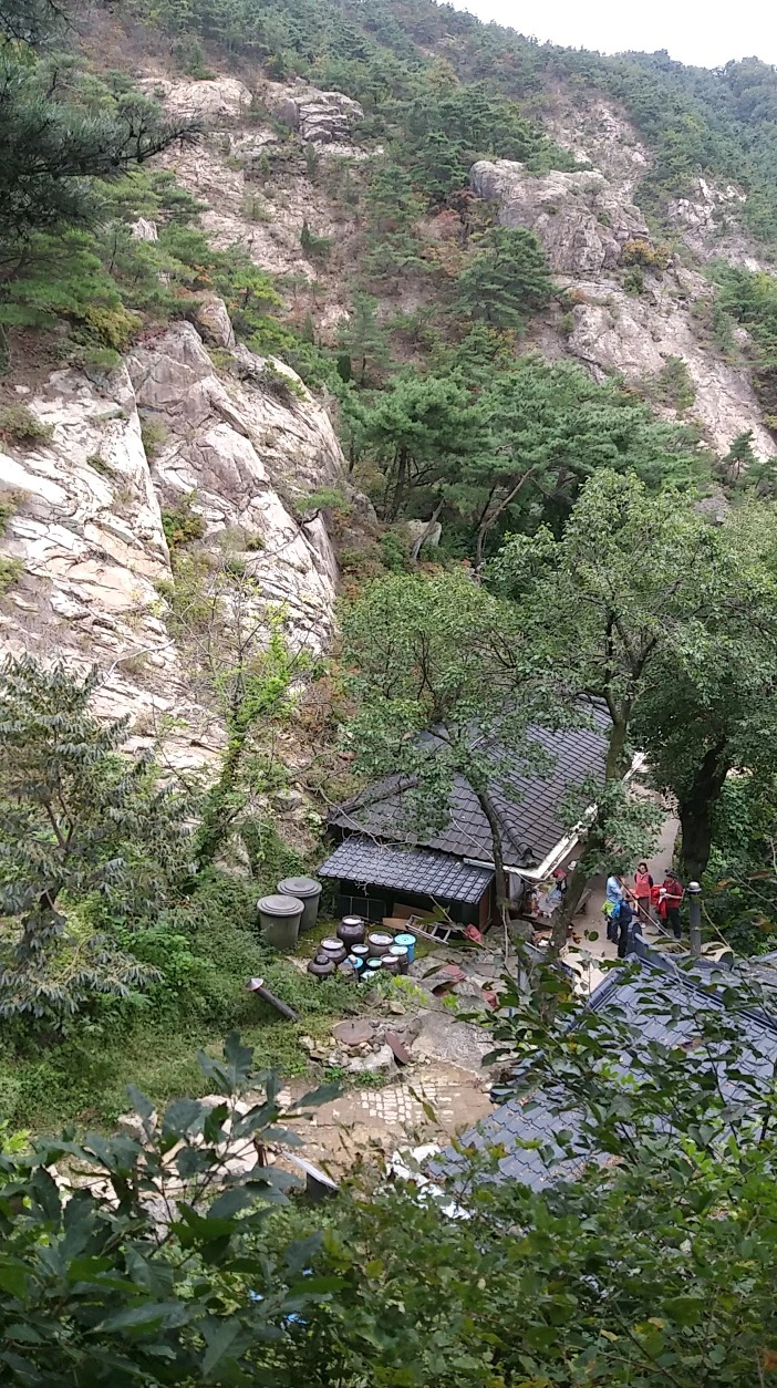 계곡을 건너 포장도로를 오르니, 시골 황토집처럼 낮고 지은 지 오래지 않아 보이는 천우사가 나온다. 스님과 보살 두 분이서 시루떡을 쟁반에 담으며 공양 준비에 바쁘다.