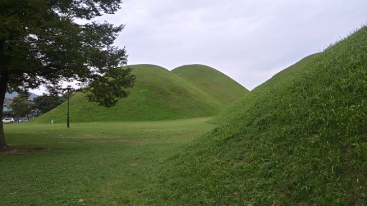 경주시내에 내려 노서리 고분군을 가로질러 황리단길 입구에서 용장리행 버스를 탔다. 황남대총 천마총 등 거대한 무덤들의 완만한 선이 천의무봉 넉넉한 달항아리의 곡선과 닮았다.