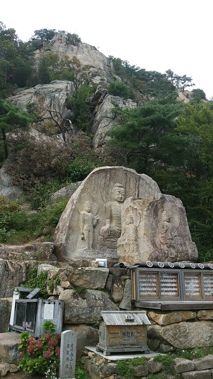 본격적인 내리막길로 접어들기 전 삼릉 능선 마루에 너른 마당처럼 바둑바위가 있다. 국립공원관리공단에서 마련한 엽서함과 남산 정취가 담긴 엽서가 놓여 있어 한 장 적어 함에 넣었다.