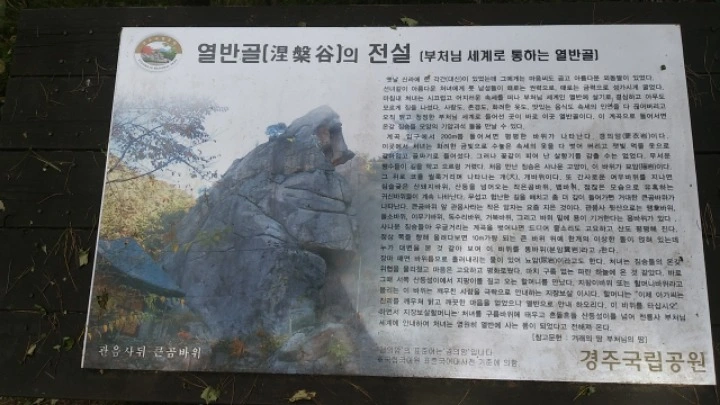 지루한 비탈길을 올라 열반재에 올라서니 안내판이 열반곡에 얽힌 전설을 들려준다. 권력과 재력을 가진 뭇 남성들의 프러포즈를 거절하고 이 계곡으로 찾아든 신라 각간의 외동딸은 지장보살의 안내로 고개 너머 천룡사 부처님의 열반 세계로 들었다고 한다. 남산 불국토를 둘러보기도 전에 벌써 열반재에 오르다니 일러도 너무 이르다는 어쭙잖은 생각이 들었다.