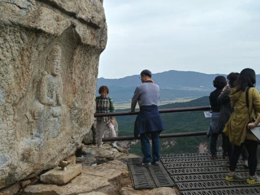 부산역발 KTX 열차가 30여 분 만에 신경주역에 도착했다. 시내버스가 선도산을 좌로 휘돌아 터미널 쪽으로 들어서자 오른쪽 멀리 너른 들 한가운데 긴 병풍처럼 솟아있는 남산이 보인다.