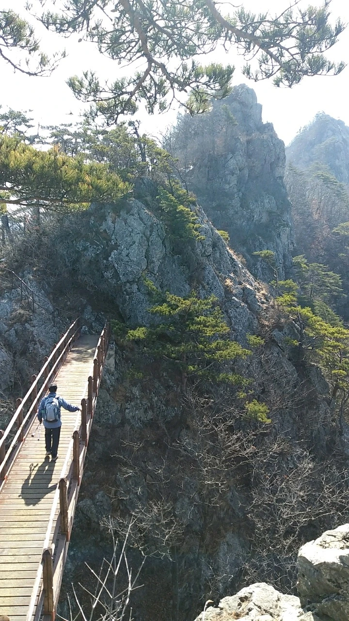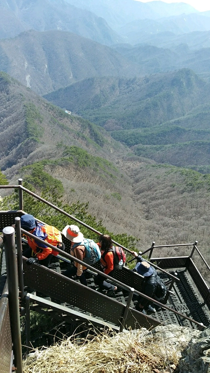 좁은 능선 마루에 놓인 철계단 난간 밖은 수직에 가까운 절벽이다. 눈앞 보이는 사물에 쉬이 혹하는 마음은 혹여 계단 바닥이 꺼질세라 절벽 반대쪽 난간을 붙잡고 조심스레 발을 옮긴다.