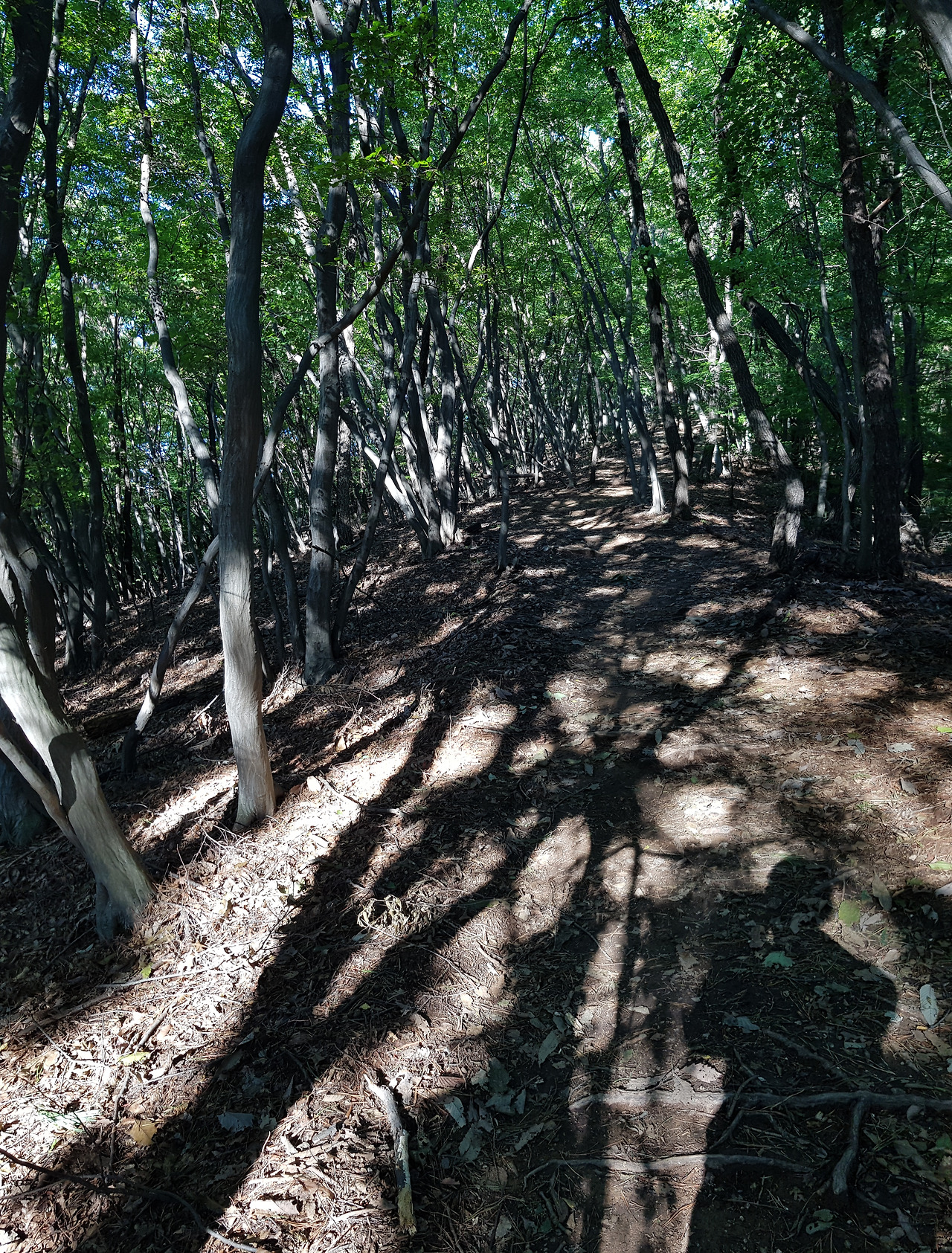 응달산은 제법 가파른 비탈과 평탄한 능선을 번갈아서 서너 차례 내놓으며 숨이 턱밑까지 차오르게 한 후에 길고 평탄한 능선으로 맞이하며 숨을 고르게 한다. 등로 옆 벤치에 앉아 궁내동 슈퍼에서 산 밀크 커피로 때 늦은 모닝커피를 대신하고 다시 발을 옮긴다.