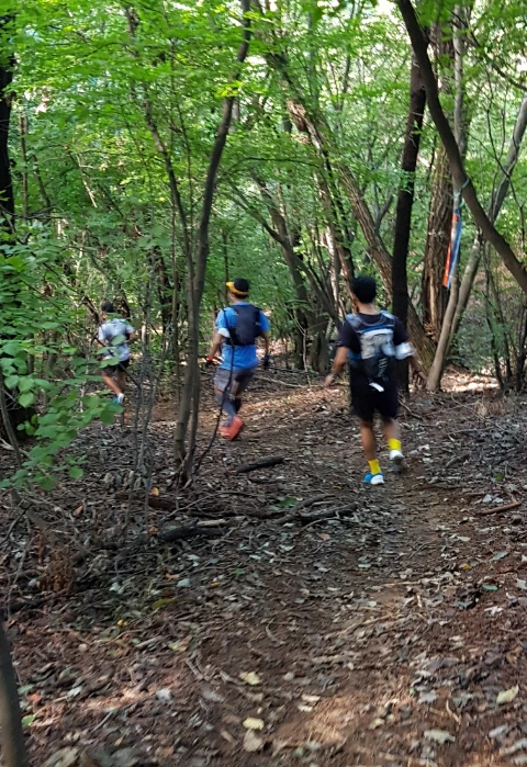 누비길을 잠시 벗어나서 해발 310.5 미터 태봉산 정상을 밟고 내려오는 길, 젊은 러너 셋이 달려오며 누비길 방향을 묻는다. 짧은 팬츠에 반팔 셔츠의 그 러너들이 순식간에 태봉산 정상을 그쳐 내 옆을 스쳐 대장동 쪽으로 뛰어 내려간다. 뒤 따라 달려오는 러너에게 물어보니 누리길 종주 달리기 중이라고 한다.