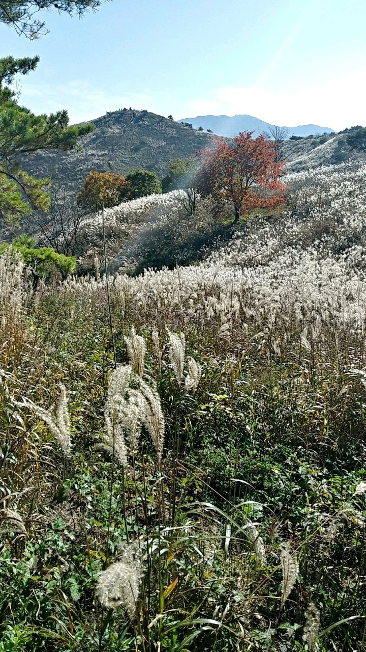 태양빛이 투과되면서 산란되어 새의 속 깃털처럼 반짝이는 억새꽃의 모습이 아름답다. 태양을 등지고 보는 억새는 빗자루처럼 거칠고 무미건조하다. 그래서 태양을 마주 보는 방향에서 감상하는 게 제격인 듯싶다. 산행코스를 잡은 H에게 한 번 더 '엄지 척'이다.