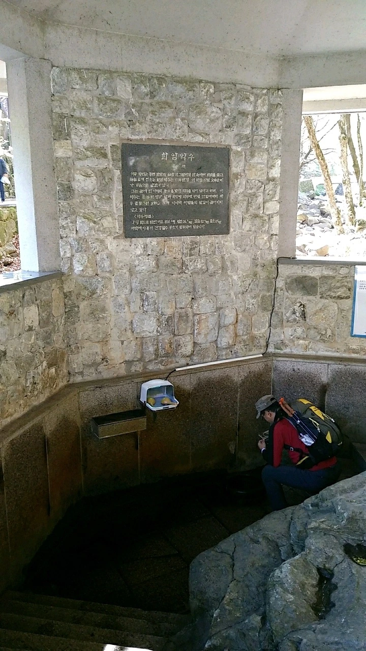 1910년에 발견되었다는 화암약수는 탄산이온 철분 칼슘 등이 풍부하게 함유되어 위장병 피부병 빈혈 안질 등에 효험이 있다고 한다. 정자 안 약수터 바닥에서 솟아오르는 약수는 톡 쏘는 맛이 탄산수를 마시는 듯했다.