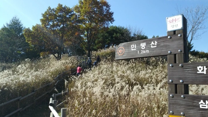 증산초교 쪽으로의 하산길은 중간 휴식처 매점에서 막걸리 한 잔 걸친 시간을 포함해서 민둥산역까지 시간 반이 소요된다. 그 길은 짧지만 가팔라 '산행'이 아니라 '억새 구경'을 온 듯 손을 잡고 오르는 연인이나 가족들의 힘겨워 보이는 모습이 안쓰럽고 한편 대견하다.