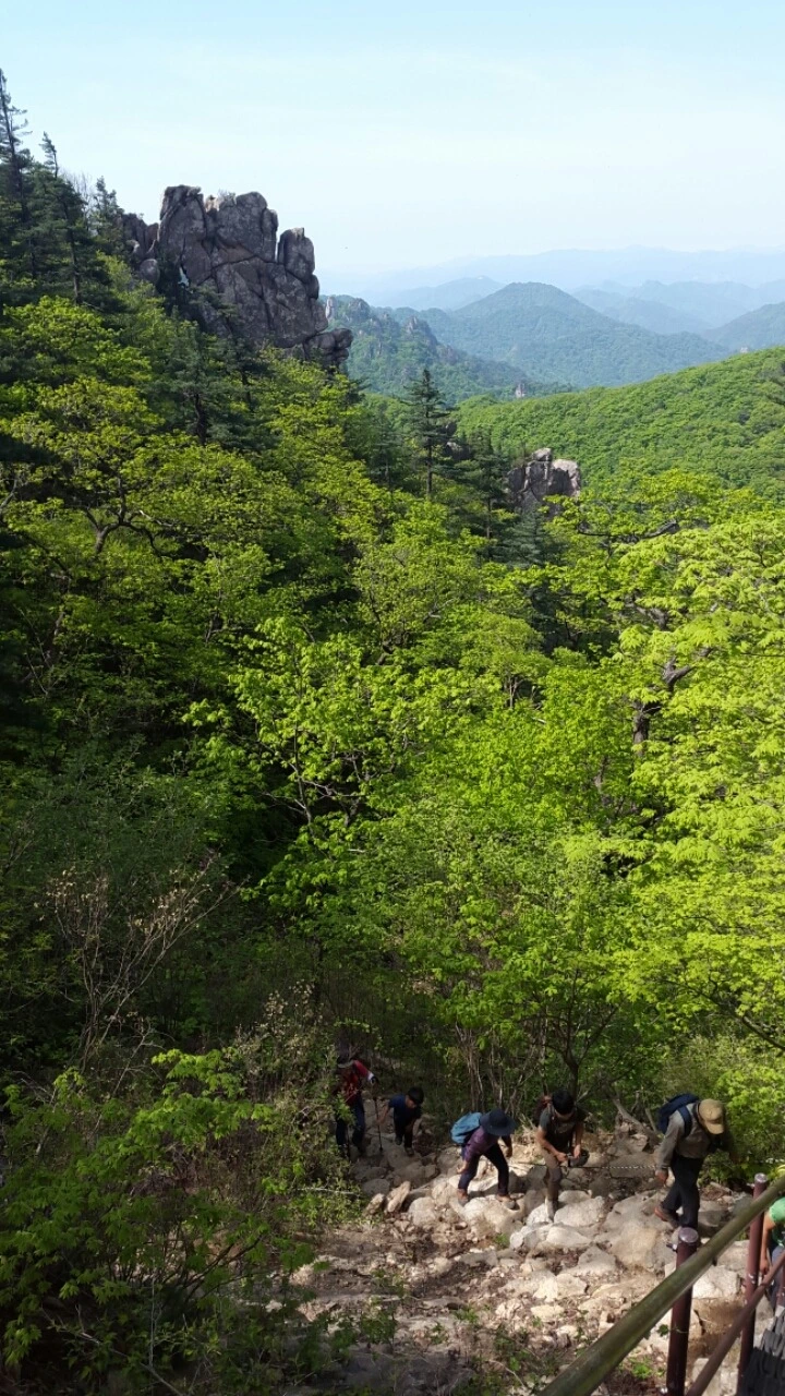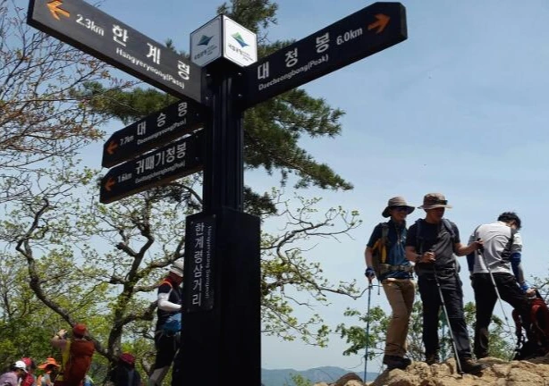 가파른 길이 익숙해지고 능선의 시원한 바람이 간절해질 무렵 해발 1300미터가 넘는 한계령 갈림길 이정표가 나타난다. 그곳엔 벌써 군데군데 산객들이 올라와 삼삼오오 앉거나 서서 숨을 고르고 서로를 격려하며 앞으로의 산행을 준비한다.