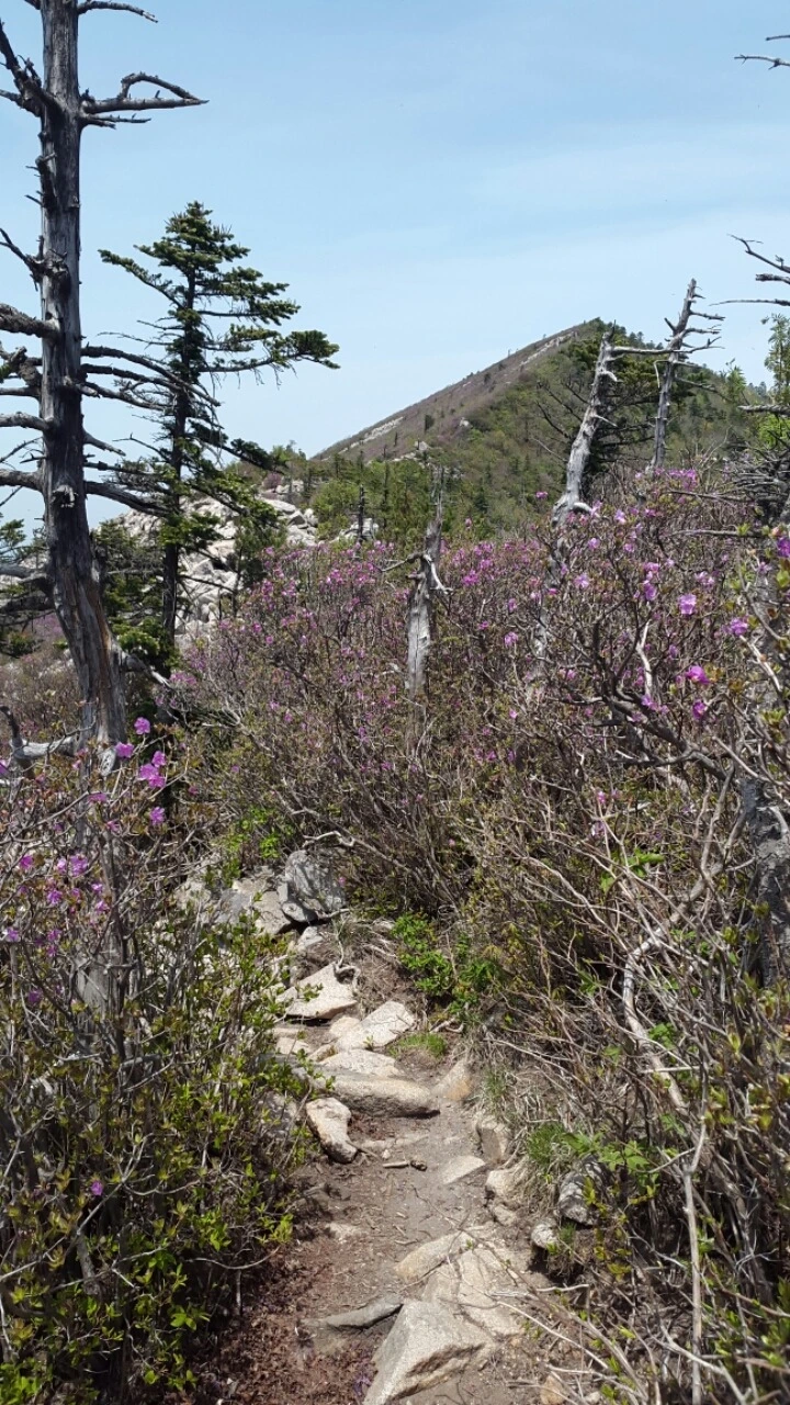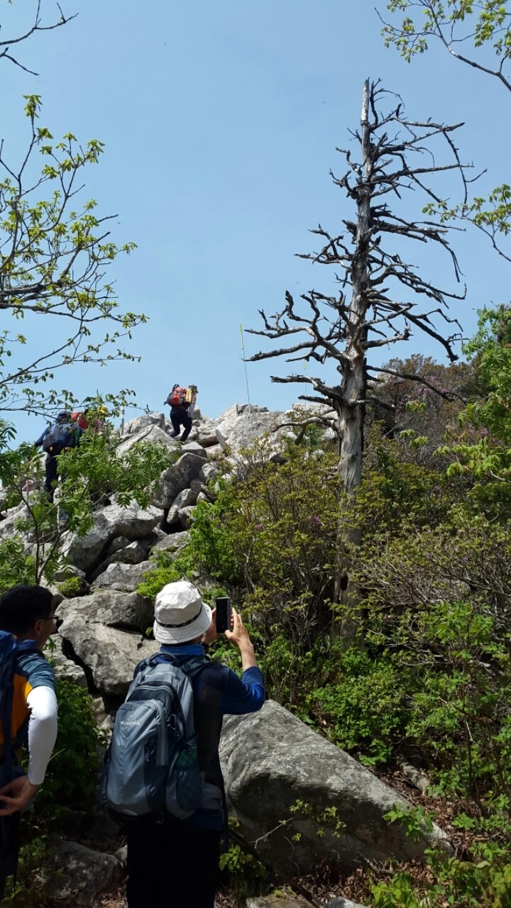 여름 산행의 번거로운 적 가운데 하나는 쉼 없이 눈으로 비집고 흘러내리는 땀과 목을 태울듯한 갈증이다. 사람 키 보다 낮게 자란 관목과 진달래로 덮여 강한 햇빛을 피할 숲이 아쉬운 산행 길에 산불처럼 밀려오는 갈증을 생수로 달랬다. 살아 천 년 죽어 천 년이라는 주목들은 척박하고 힘겨운 환경 탓인지 살아서의 명을 다하지 못한 채 하늘을 보금자리 삼아 곳곳에 화석처럼 우뚝 서서 죽어서의 삶을 누리고 있다.