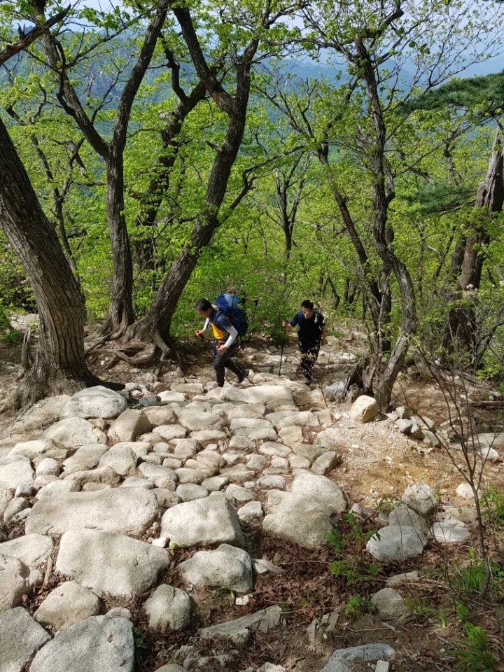 여느 산행과 마찬가지로 그 초입은 근육과 뼈, 호흡과 걸음걸이, 어깨와 짊어진 배낭이 서로 자리를 잡으며 서로 익숙해지는 시간으로 본격적인 산행에 대한 설렘과 함께 잠시나마 '사서 고생한다'는 생각도 들게 한다. 산행의 고통은 온전히 스스로가 감수해야 하는 것으로 그 고통 뒤에 찾아올 희열도 혼자만이 만끽할 수 있는 권리다.