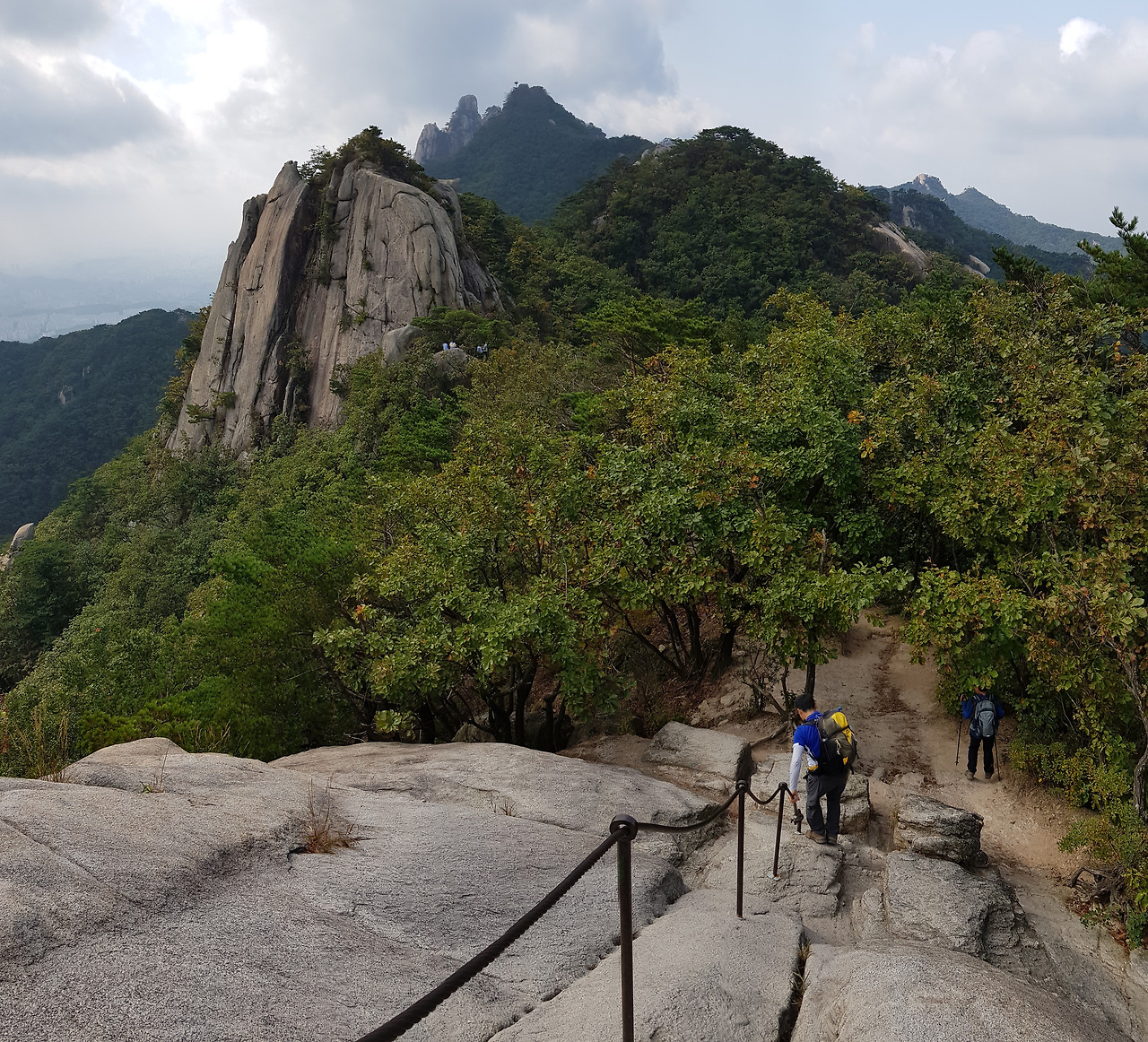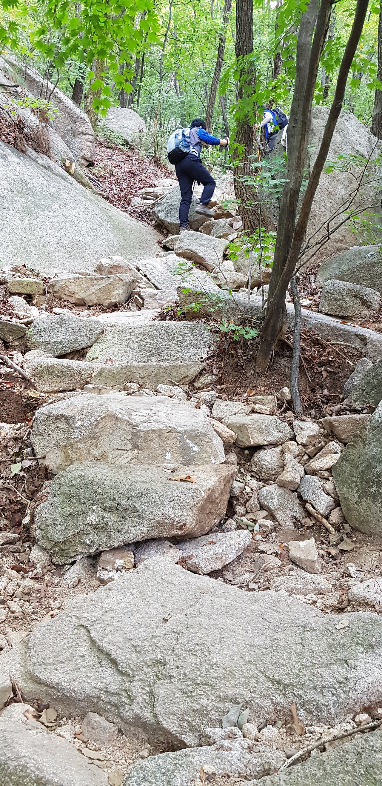 앞서가는 동료들 뒤를 쫓아가며 시시각각 펼쳐지는 장관을 스마트 폰에 담는다. 산행 중에 내가 찍은 사진 속 인물은 천편일률 똑같은 모습, 뒷모습이 대부분이다. 체력은 뒤떨어지고 호기심의 눈길은 전후좌우로 번거롭기만 하니 뒤에 처질 수밖에 없기 때문이다.