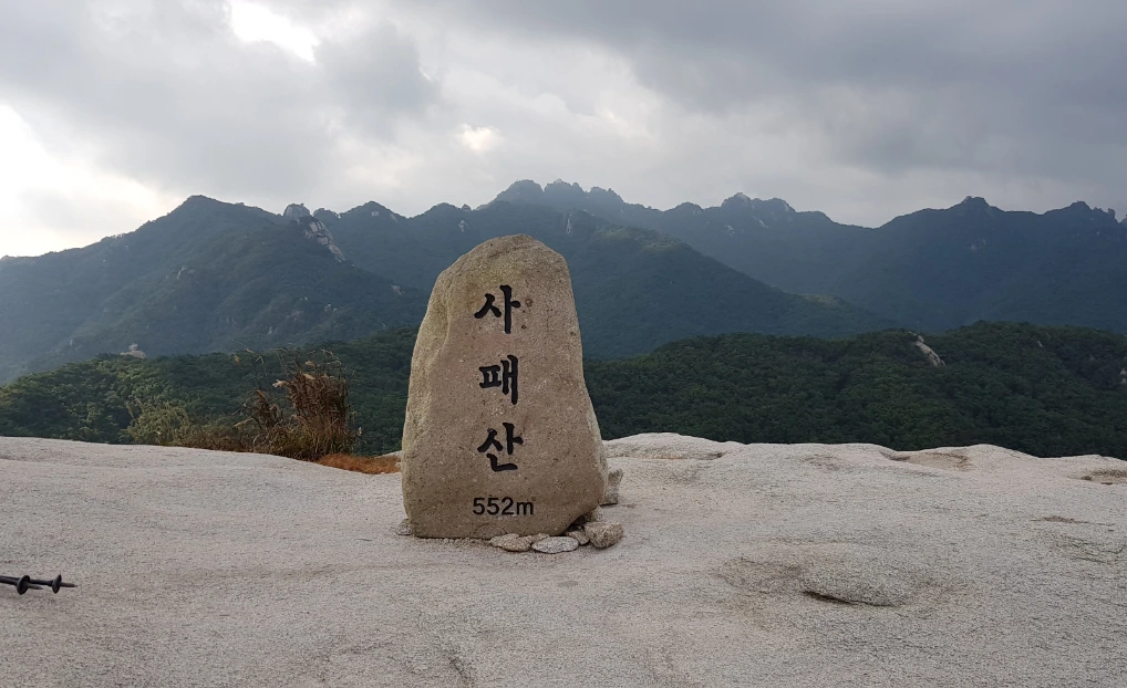 요 며칠 새 공기가 완연히 서늘해졌지만 사패산으로 오르는 비탈길은 몸에 땀이 배이고 긴팔 옷소매를 걷어붙이게 한다. 사패산 정상은 올라선 사패능선 좌측 300여 미터쯤에 자리한다. 한 시간 여만에 가뿐히 사패산 정상에 올라섰다.