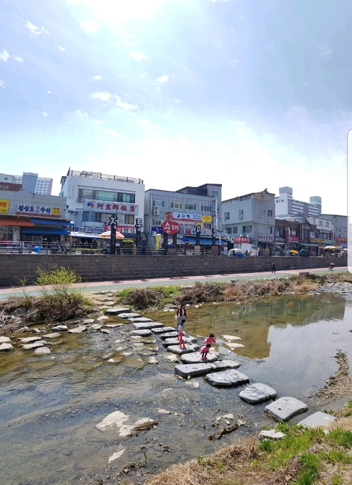 양지천을 건너 접어든 경안천변을 따라 도열한 벚꽃이 장관이고, 양산을 받쳐 든 노파는 냉이를 캐고, 보 위에는 가마우지 한 마리가 미동도 없이 물속을 응시한다. 경안천을 뒤로하고 용인시 중심부를 흐르는 금학천으로 접어들었다.