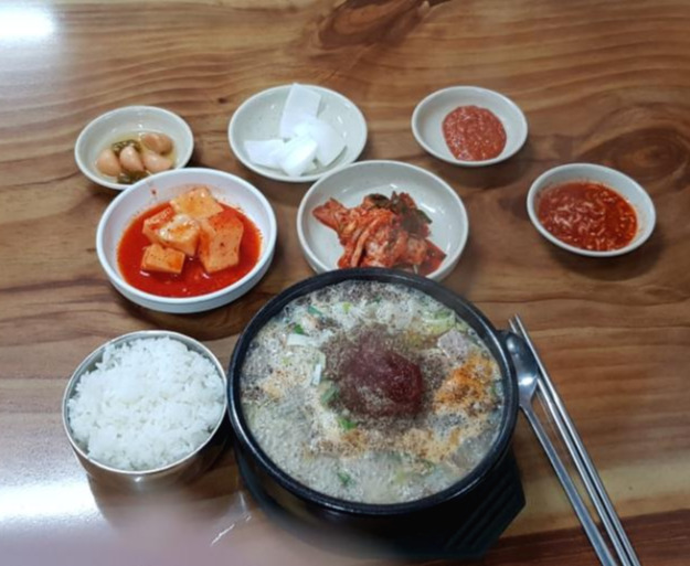 후추와 양념장을 얹어 뚝배기에 내오는 순댓국은 먹음직스러운 외양처럼 맛이 있고 순대와 함께 넣은 부속 고기도 양이 많다. 선지가 많이 들어가는 병천 순댓국에 비해 특유의 냄새가 거의 없고 맛이 담백하다. K사의 '6시 내 고향' S사의 '생방송 투데이' 등 공영방송을 탄 맛집이라고 한다. 옆집과 그 옆집들도 맛은 대동소이하지 싶다.