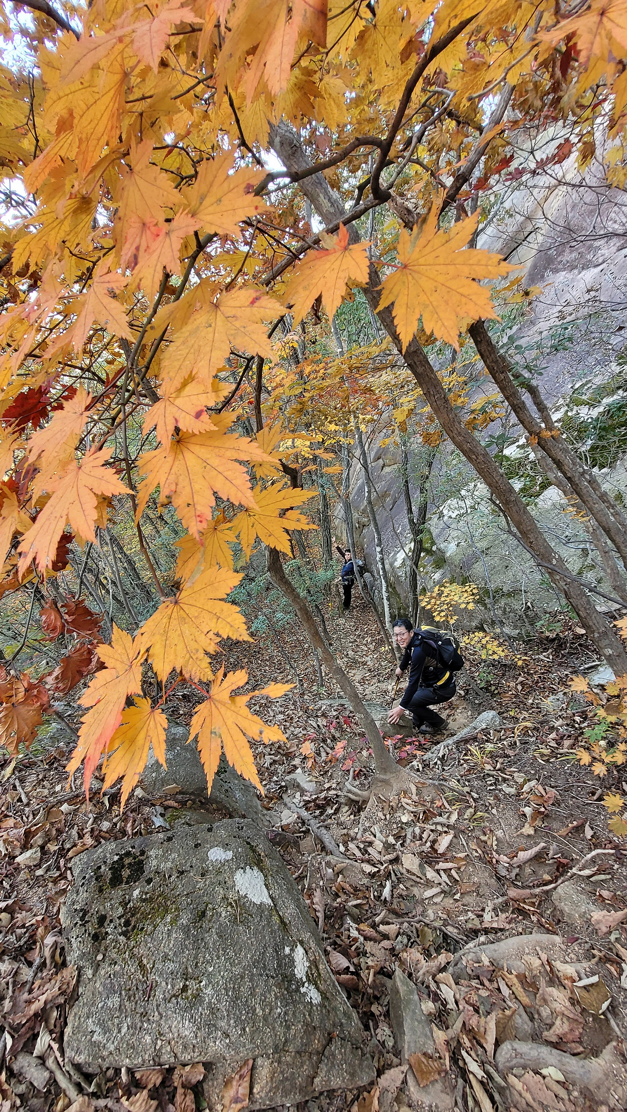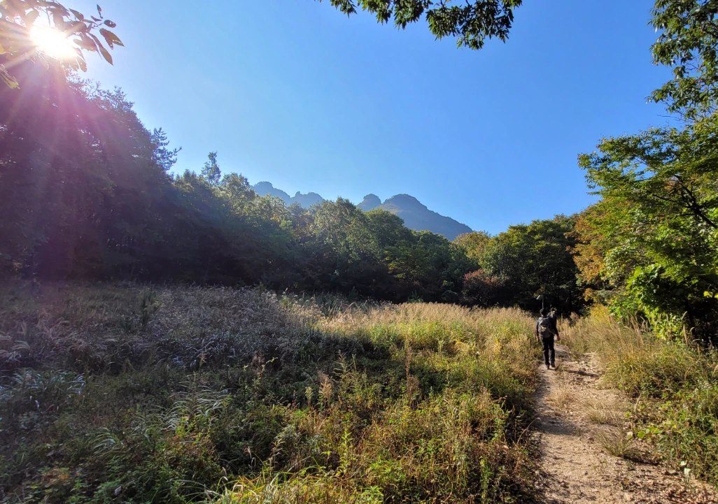 소중한 시절은 짧고 좋은 것은 빠르게 스쳐 지나간다고 했던가. 산수화 속 선경(仙景) 같이 아름다운 봉우리와 능선을 부지불식간에 다 지나고 이제 본격적인 하산 길이다.