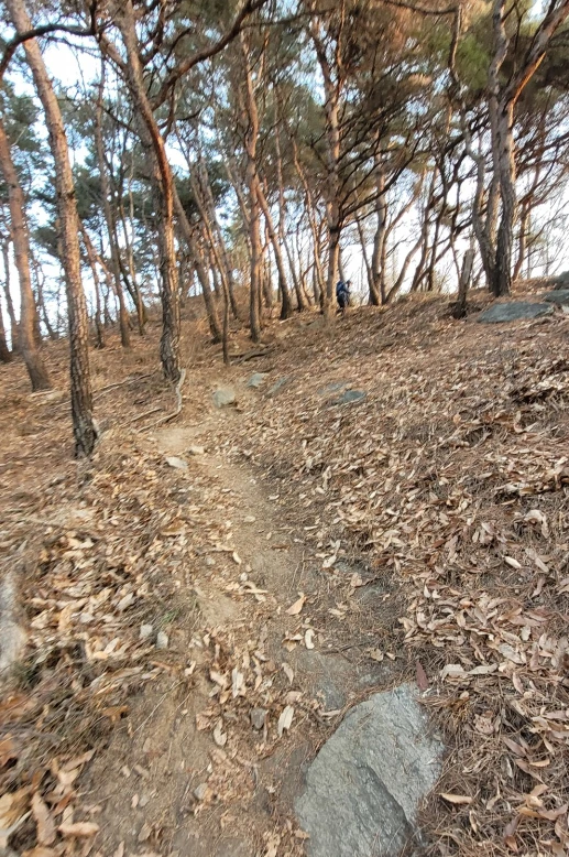 예봉산 1km여 앞둔 능선은 좌측으로 가파른 절벽과 함께 툭 트인 드넓은 조망을 선사한다. 가파른 검단산 기슭이 한강 줄기를 따라 경계를 긋고 있다. 강 건너 저 어디쯤에 백제 개루왕의 짓궂은 시험을 물리치고 정절을 지킨 도미부인과 두 눈을 잃은 도미의 이야기를 전하는 도미나루가 있을 것이다.