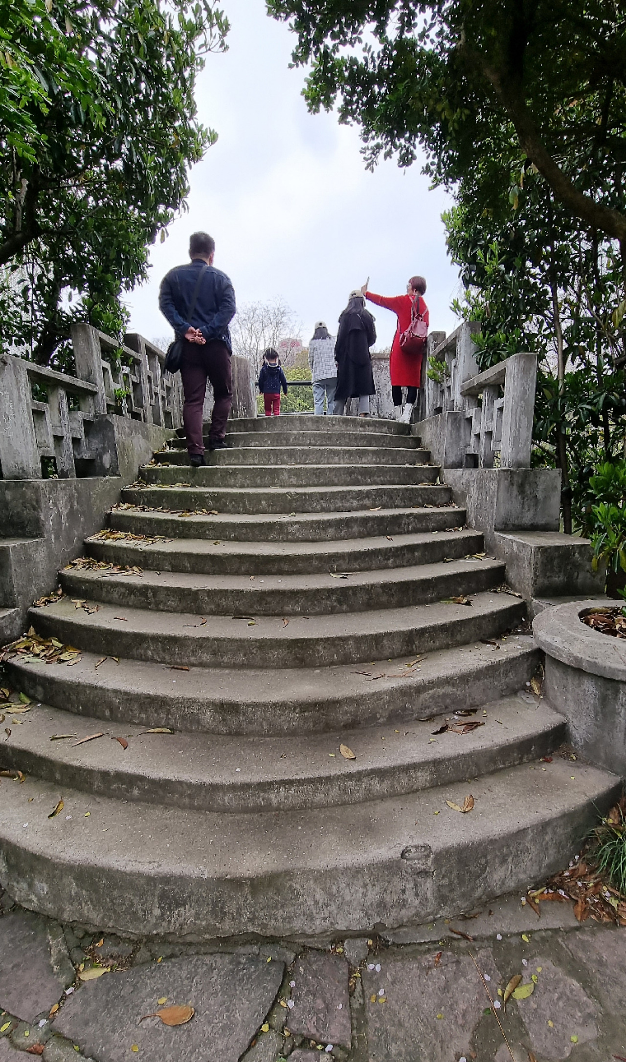 분재원을 거니는데 나비 한 마리가 내 주위를 맴돌다 날아간다. 회색 뚱뚱한 고양이 한 마리가 느릿하게 화초 잎을 입으로 물어뜯는 모습이 익살스럽다. 경운정(景云亭) 아래 연못가 산책로의 누런 빛깔 줄기에 푸른 잎 대나무가 이채롭다. 연못 위 다리를 건너면 울창한 수목 사이에 자리한 적막한 삼미서옥(三味书屋) 앞마당에서 백발의 노 화가가 건물 앞 돌사자 상을 캔버스 화폭에 옮겨 담고 있다.