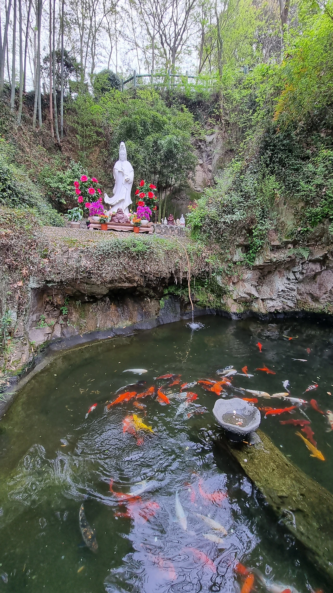 동셔산 정상은 해발 74m로 산 전체에 녹나무와 함께 대나무가 울창하고, 능선을 따라 장군정(将军亭) 상취정(尝翠亭) 건륭정(乾隆亭) 목어석(木鱼石) 등 볼거리들이 차례로 나타난다. 은은한 불경 소리에 끌려 대나무 숲에 둘러싸인 불향천(佛香泉)으로 내려갔다. 연못으로 약수가 흘러내리는 약병을 손에 든 순백 약사여래, 연못 속에서 유유히 노니는 컬러플한 잉어들, 연못 가에서 물속을 들여다보는 천진스러운 아이들이 동심의 세계인 듯 천상의 세계인 듯 평화로워 보인다.