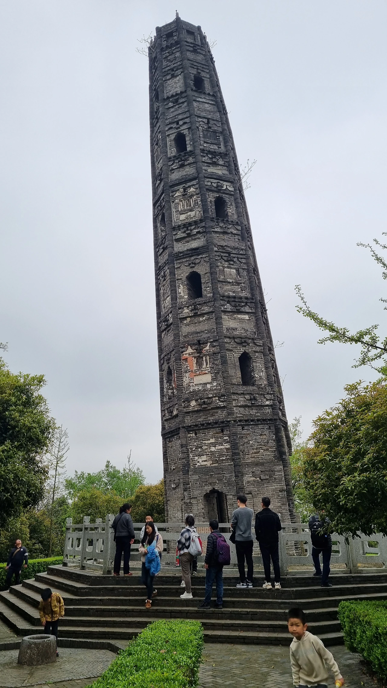 사방 높은 담장이 둘러쳐진 산정에 자리한 금빛 동관음(铜观音)이 이곳이 옛 상봉사(上峰寺) 터임을 알려준다. 그 바로 아래에 우뚝 솟아 있는 탑 하나, 송나라 때인 1079년 세운 팔각칠층 호주옥광탑(护珠宝光塔)이다. 탑 끝이 중심에서 2.27미터 기울어진 사탑(斜塔)으로 이태리 피사의 사탑보다 1도가 더 기울져 있어 중국인들은 '천하제일의 사탑'이라 부른다고 한다. 탑은 금세라도 넘어질 듯 아찔하게 기울어진 채 하늘로 높이 솟아 있다.