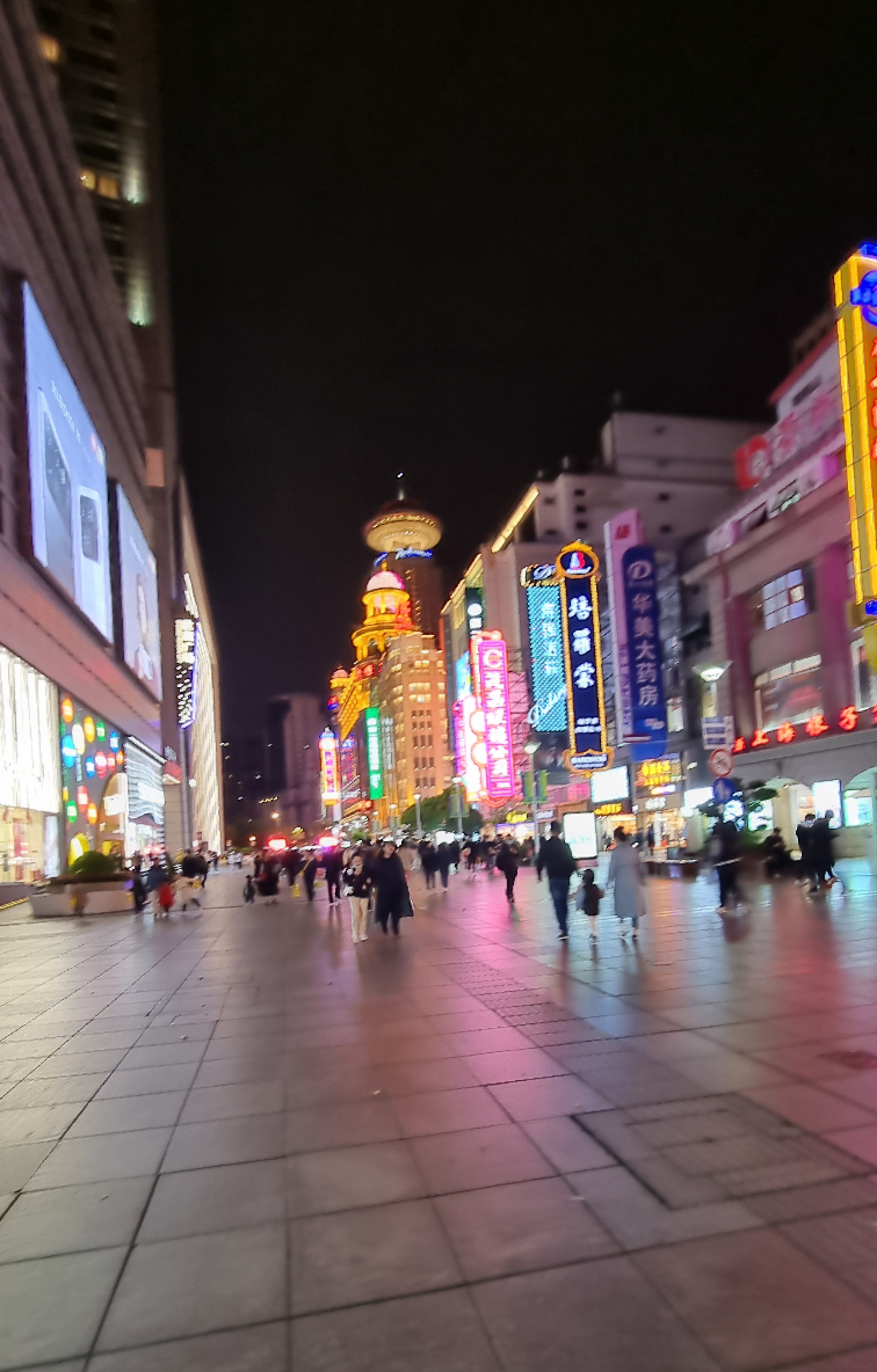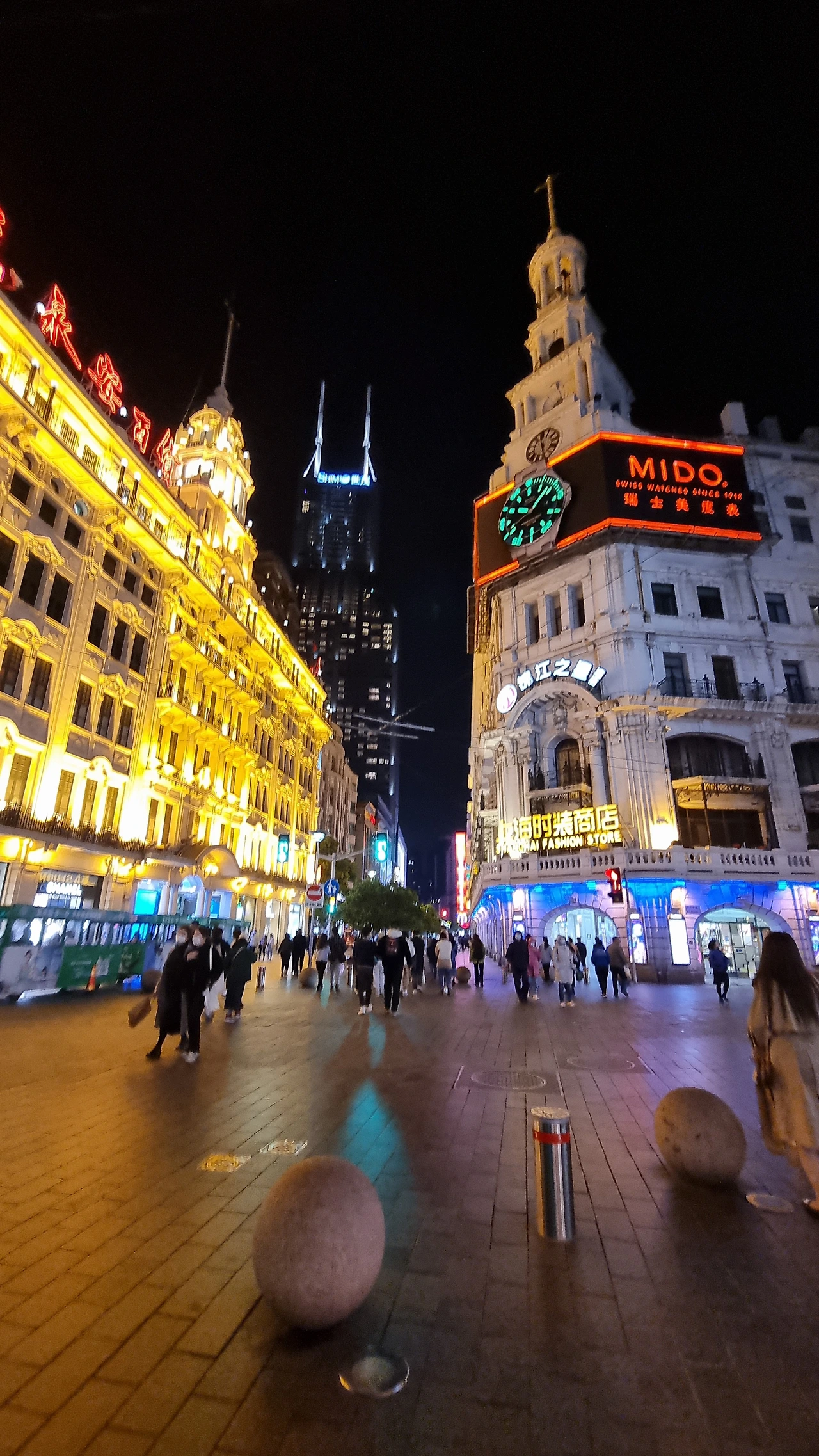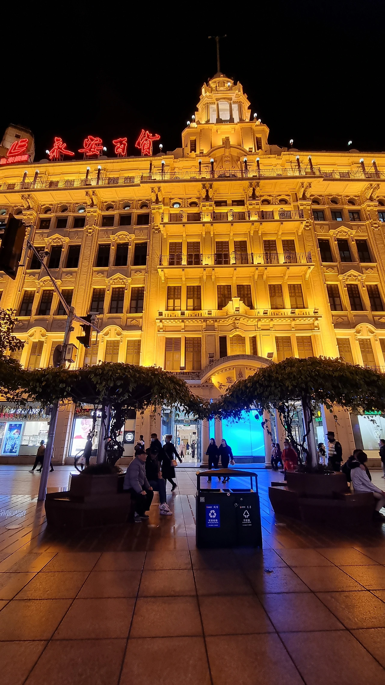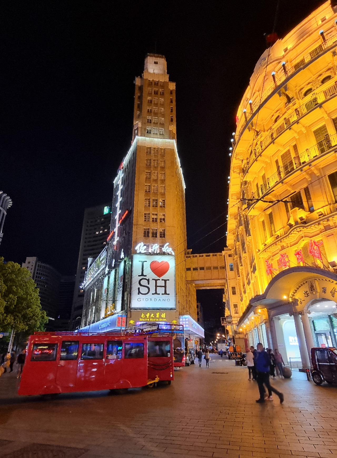 저쟝중루(浙江中路)와 후베이루(湖北路)가 보행가 좌우로 나뉘는 교차점에 조명을 받아 금색으로 빛나는 영안백화(永安百货) 빌딩을 가운데 두고, 우측에 'MIDO'라는 글자와 더불어 커다란 벽시계로 장식된 시장상점(时装商店), 좌측에 'I♡SH'라는 엠블럼이 선명한 화교상점(华侨商店) 등 세 빌딩이 모여 있다. 맞은편 건널목에서 유니크한 세 빌딩을 마주 보는 순간 마치 뉴욕의 타임 스퀘어에 서있는 착각에 빠질 뻔했다.