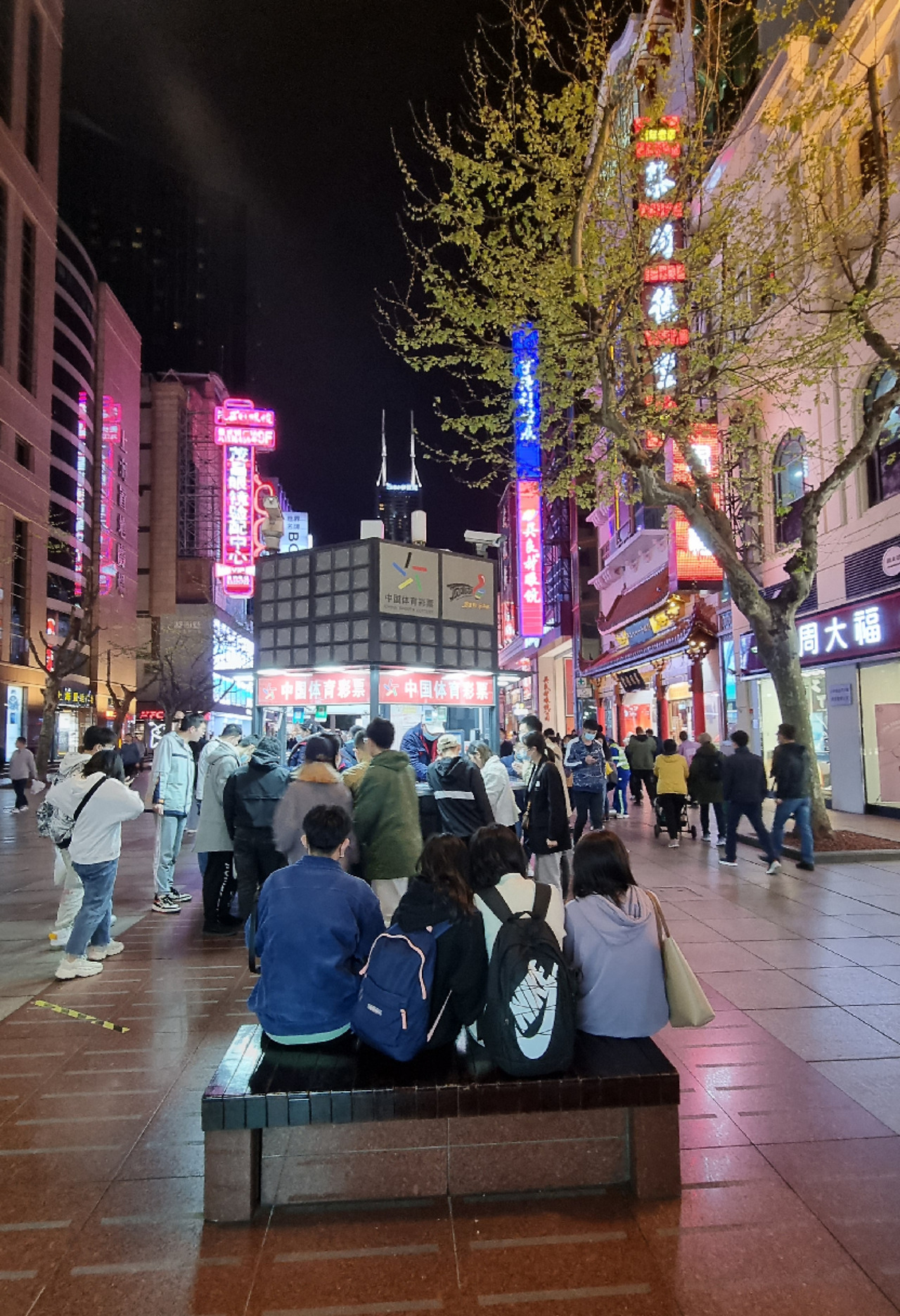 날 좋은 봄날 저녁이다. 일찌감치 저녁을 들고 산책 삼아 밖으로 나섰다. 전철 10호선을 타고 난징동루(南京东路) 역에서 내려 6번 출구 닝보루(宁波路) 쪽으로 나와서 난징루 보행가(步行街) 거리 쪽으로 걸었다.