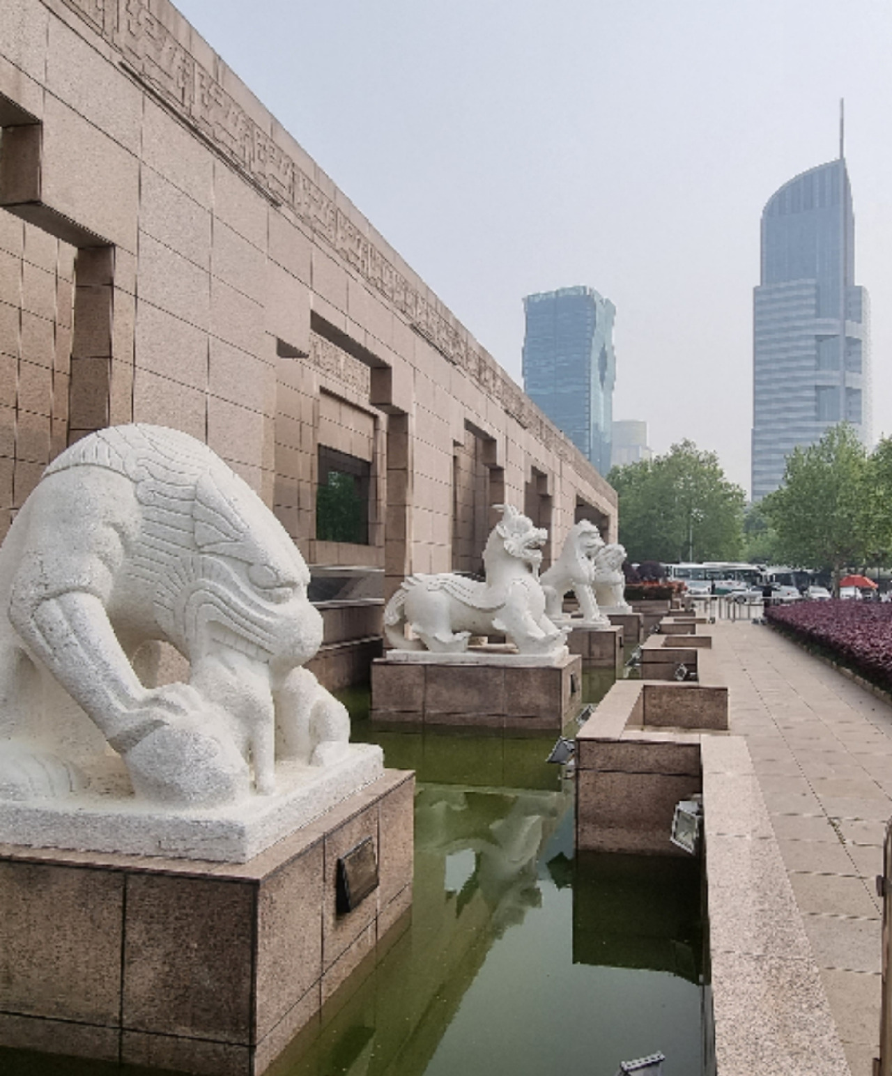 상해박물관은 월요일을 제외하고 연중무휴 무료로 일반인에게 개방되는데, 미리 온라인으로 관람 신청을 해둔 터라 입장에는 문제가 없을 것이다. 이름 모를 동물 상이 박물관을 호위라도 하듯 정문 입구 좌우에 앞발을 세운채 정면을 향해 도열해 있다.
