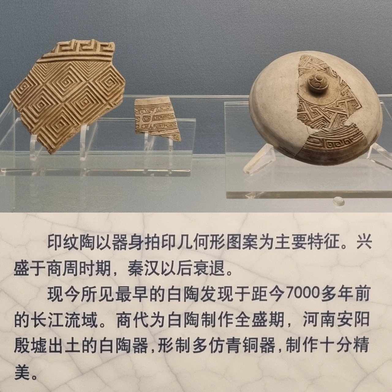 2층 도자관 도자관 관람은 기원전 6800년경 선인동(仙人洞) 유적지에서 출토된 도편(淘片) 몇 조각으로부터 시작되어 BC3600~3000년경 앙소(仰韶), BC2400~2000년경 용산(龙山) 등 고대문화 도기들이 모습을 보인다.