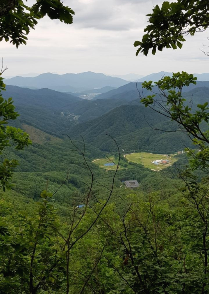 수풀의 녹음은 장마 지난 계곡 물이 넘쳐흐르는 것처럼 계곡과 임도를 덮칠 듯 무성하다. 새소리가 합창으로 산객을 맞는다. 포장도로가 소리봉에서 뻗어 내린 능선 바로 아래까지 놓여있다.