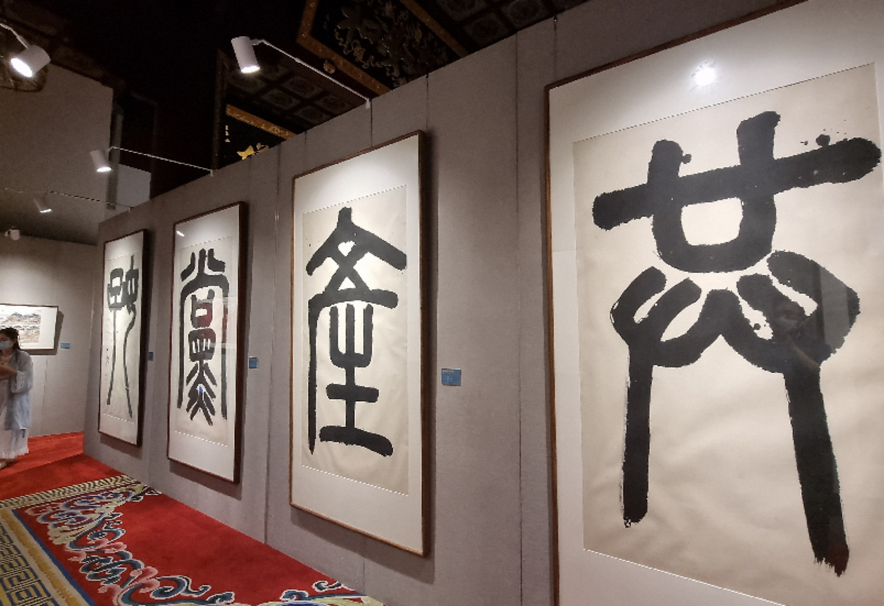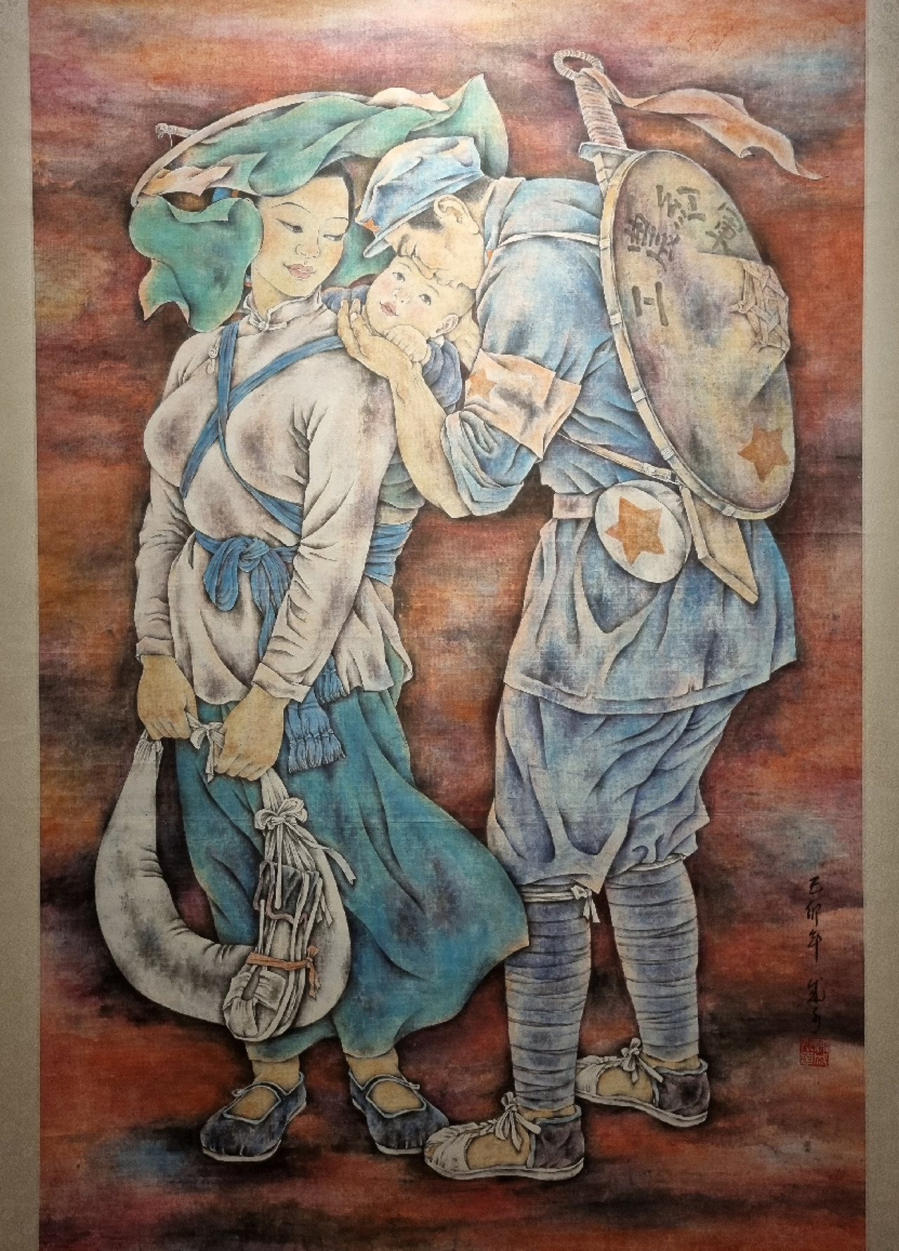'장경루'와 '직지당(直指堂)'이란 현판이 나란히 걸린 전각 안에는 중국 공산당 창건 100주년 기념 서화들이 전시되어 있다. 담긴 의미를 평하기는 난감하지만 뛰어난 솜씨의 붓글씨와 그림들을 이곳 사찰에서 만나게 된 것은 특별한 행운이다. '농공홍군(農工紅軍)'이라 쓰인 둥근 방패와 칼을 등에 지고 아내 등에 업힌 아이 얼굴을 어루만지며 참군(参軍)을 떠나기 전 작별하는 그림과 전서체로 쓴 '공산당호(共産黨好)'라는 대작이 인상적이다.