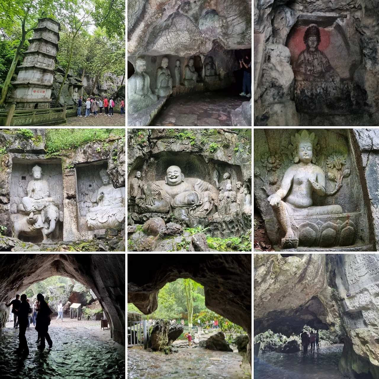 동굴을 빠져나와 렁촨시(冷泉溪) 계곡을 사이에 두고 비래봉 암벽과 나란히 난 링인쓰 쪽으로 오르는 길을 따라 걷는 걸음이 암벽에 조각된 불상들에 정신을 빼앗기다 보니 더디기만 하다. 포대화상과 다보천왕 조각상 앞에 특히 많은 사람들이 모여 해설사의 설명에 귀 기울이고 있다. 둥그스름한 얼굴의 좌불 하나는 눈매와 입가에 어린 미소가 '천년의 미소'라 불리는 신라 수막새와 흡사하다.