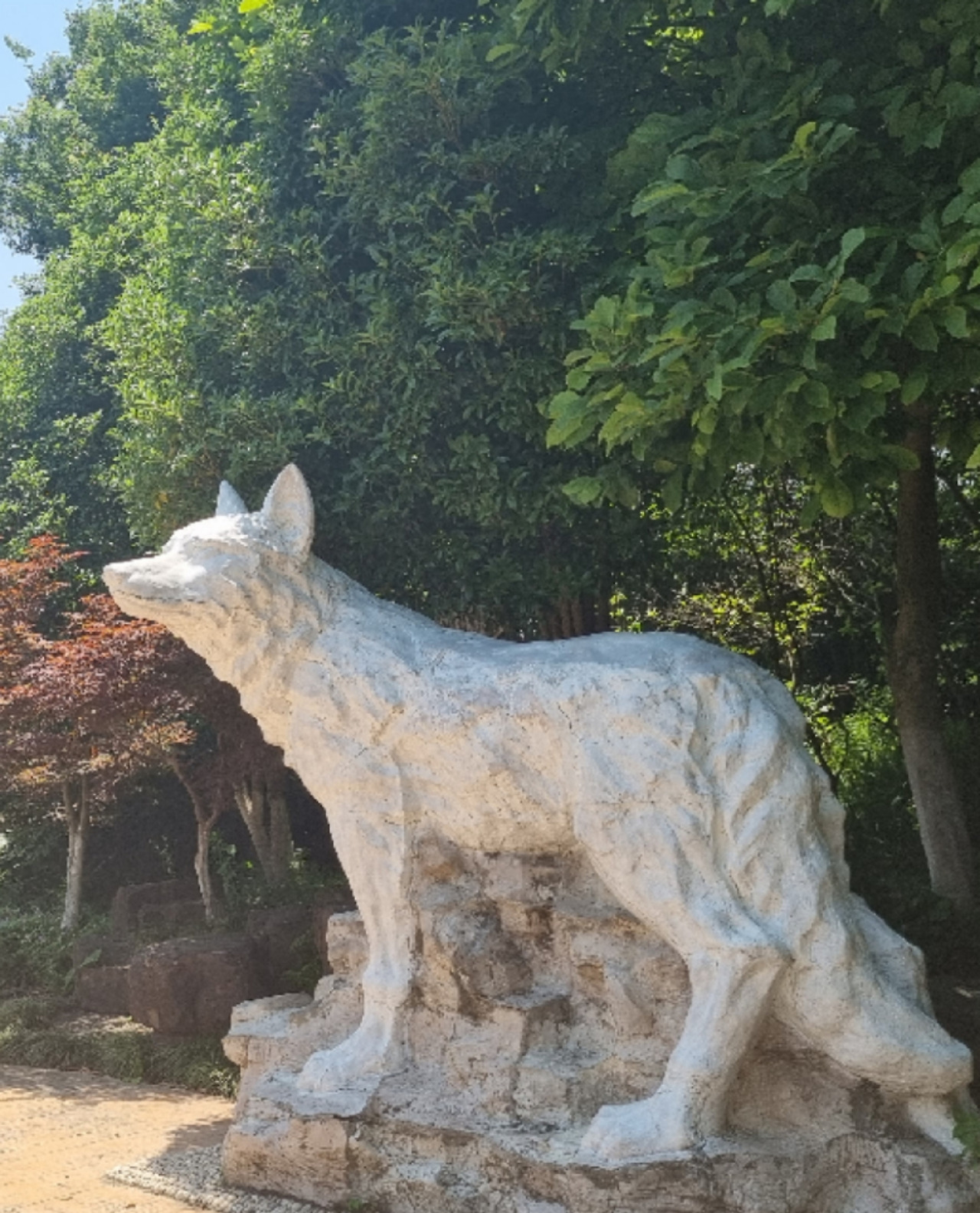 낭산과 광교사의 정문 격인 동문 쪽으로 향하는 길옆 낙빈왕(骆宾王, 626?-687?) 묘도 눈에 띄었다. 저장성 이우(义乌) 출신 시인으로 '초당사걸(初唐四傑)’로 불렸으며, 측천무후에 대한 반란에 가담하여 격문을 기초하였으나 주동자 서경업(徐敬業)이 패망한 후 종말을 알 수 없게 되었다고 한다. '강산여화(江山如画)'라는 현판이 걸린 산문을 나서기 전 흰 늑대(白狼) 동상이 낭산의 전설을 상기시켜 준다.