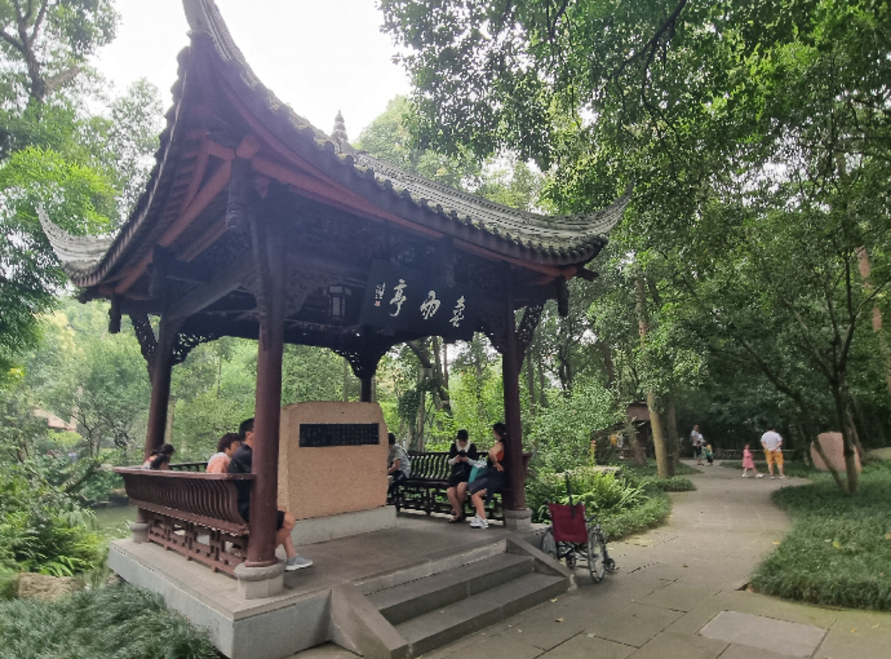 희우정(喜雨亭) 옆 두보가 50세 무렵 이곳 초당(草堂)에 머물 때 지었다는 시 '춘야희우(春夜喜雨)' 기념비와 두보 동상은 기념사진을 남기려는 사람들로 북적이는 핫 스폿이다. 마침 햇빛을 가려주는 빗방울이 조금씩 긋고 있으니 봄밤은 아니라도 단오절을 하루 앞두고 내리는 '초여름 좋은 비(初夏喜雨)'라 이름해도 좋을 듯싶다.