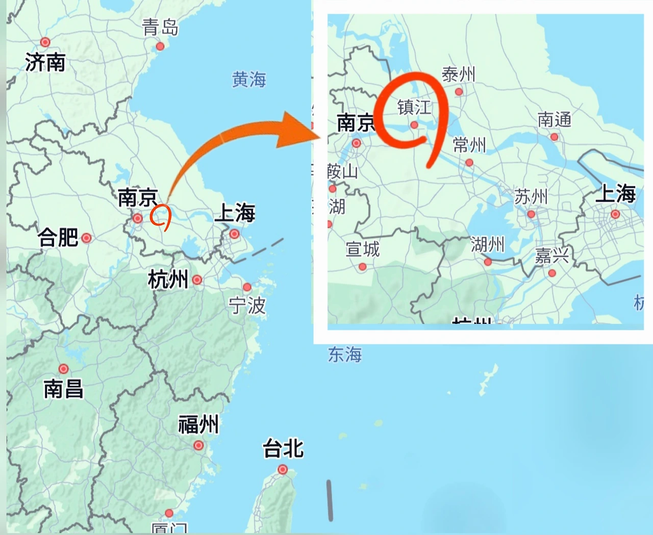 다경루를 지나 산정에 위치한 북고루에 올라 2층 난간으로 나서니 1층 처마에 걸려 있던 '천하제일강산(天下第一江山)'이라는 편액이 과장이 아님을 항변하듯 창쟝과 산이 어우러진 장쾌한 파노라마를 눈앞에 펼쳐 보인다. 전쟝의 옛 이름이 '징커우(京口)'인 연유로 세 산을 통칭하여 징커우 삼산(京口三山)'이라고도 부르는데, 모두 100m가 넘지 않는 밋밋한 산이지만 창쟝(長江) 하류 평원에서는 여전히 높고 훤칠하다.