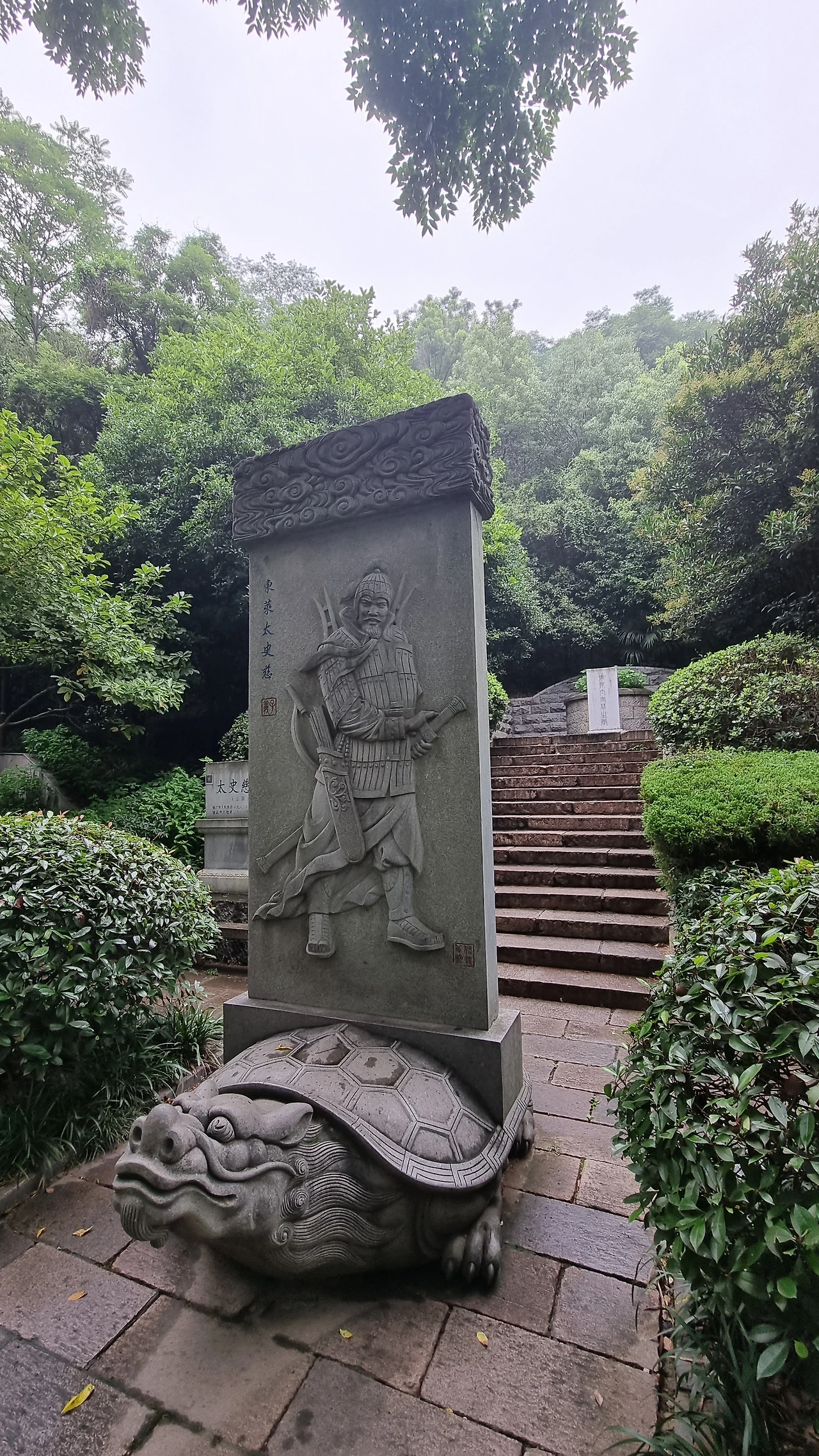 능선을 따라 출구 쪽으로 내려가다 보면 산밑 가장자리 부근에 오나라 장수 노숙(172-217)과 태사자(166-206)의 묘가 차례로 자리하고 있다. 궁술의 명수로 유요 손책 손권의 휘하로 옮겨 다녔던 장수 태사자, 그리고 208년 남정을 나선 조조가 형주를 탈취하고 강동을 위협하자 주유 유비 연합군과 함께 조조의 대군을 적벽에서 대파한 노숙의 무덤과 부조상을 이곳에서 마주하리라고는 생각지도 못했다.