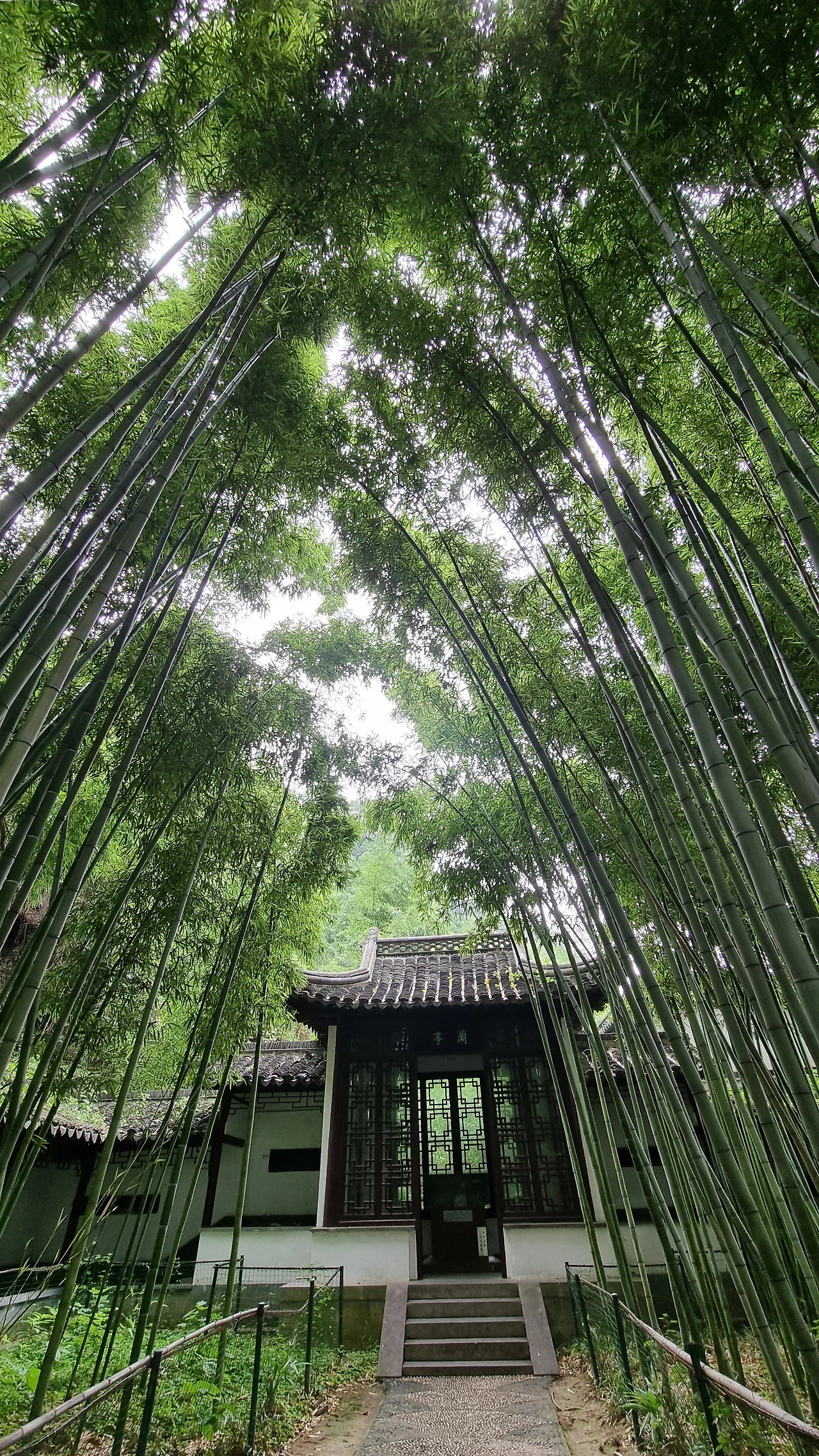 焦山兰亭园竹林唯茂盛 心中客愁似长江不息流