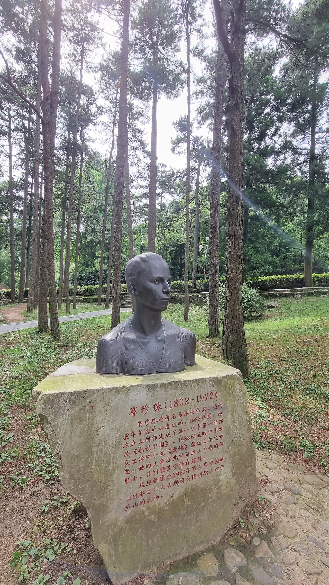 싼디에촨 폭포를 뒤로하고 내려왔던 계단을 하나씩 밟으며 약 한 시간을 거슬러 올라갔다. 셔틀버스를 타고 구링쩐으로 올라갔다가 다시 걸어 내려오며 메이루(美庐) 별장과, 공산당 회의 구지(旧址), 이곳서 <대지>를 집필한 펄벅을 비롯한 문인들의 흉상 등을 서둘러 훑어보았다.