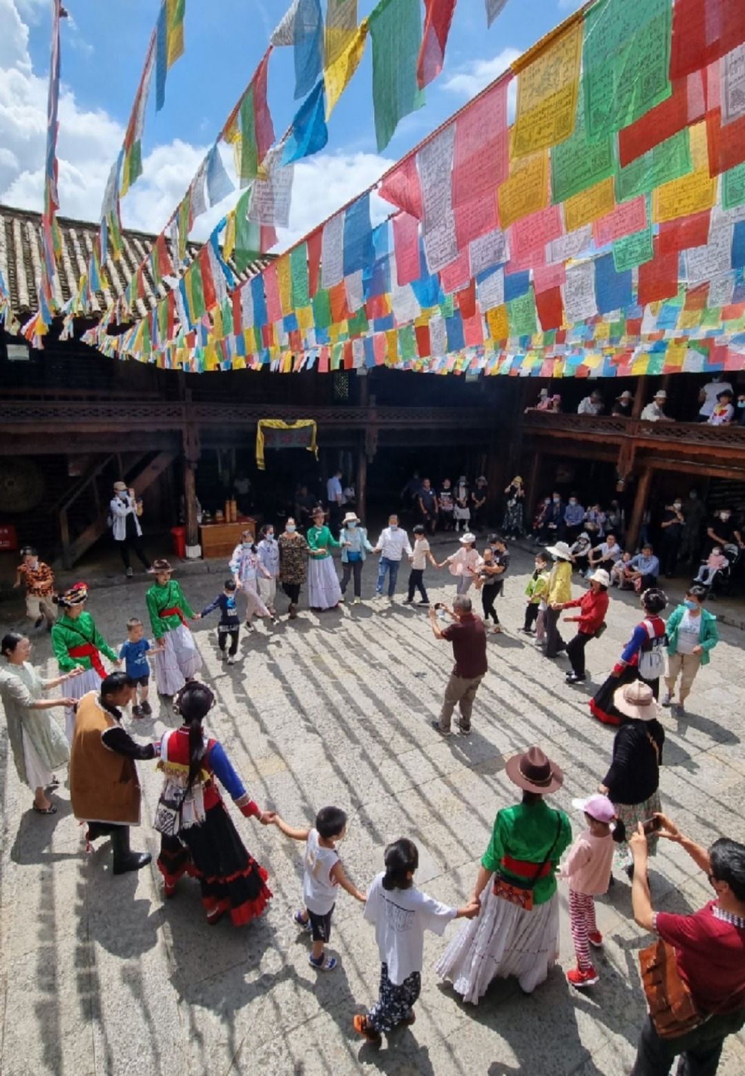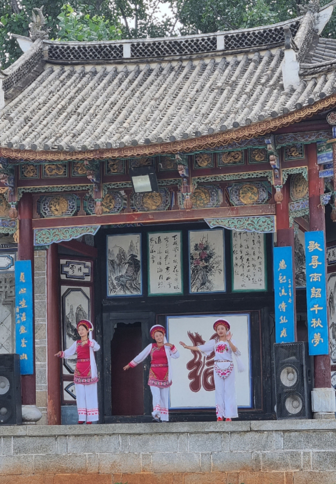 바이족(白族)촌에서는 민속의상 차림의 젊은 여성들이 아담한 크기의 정자처럼 생긴 무대 위에서 짧은 전통공연을 펼쳐 보인다. 바이족은 따리를 중심으로 강력한 군사력과 찬란한 불교문화를 이룩한 남조(南詔, 653~902) 왕국에 이어 22대 300여 년 동안 지속한 따리국(大理国, 938~1253)의 주인공이다.