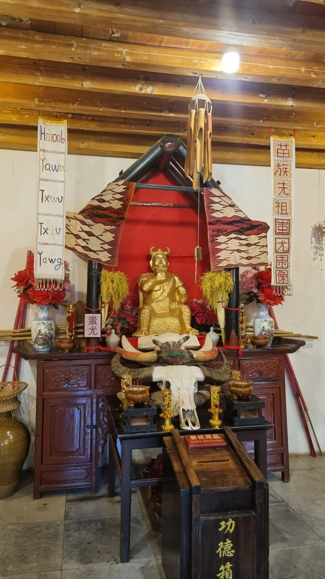 와족은 '산 위에 사는 사람'이라는 뜻이라고 하는데, <삼국지> 칠종칠금(七縱七擒) 이야기의 주인공 맹획이 와족이라는 설도 있다. 1950년대 이전까지 남아 있던 인두제(人头祭) 풍속이 지금은 소 머리를 바치는 의식으로 바뀌었다고 한다. 곳곳에 주렁주렁 물소 머리 장식이 걸려 있던 이유를 알겠다.