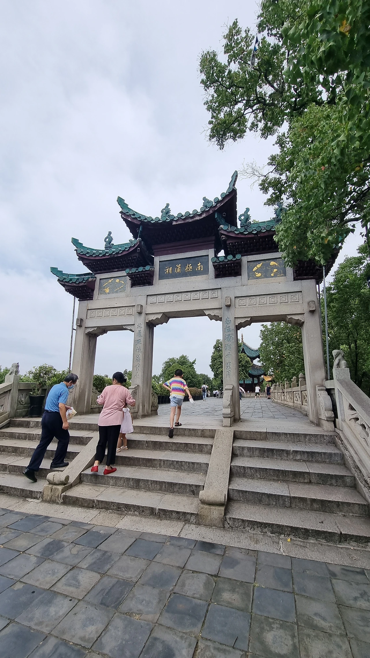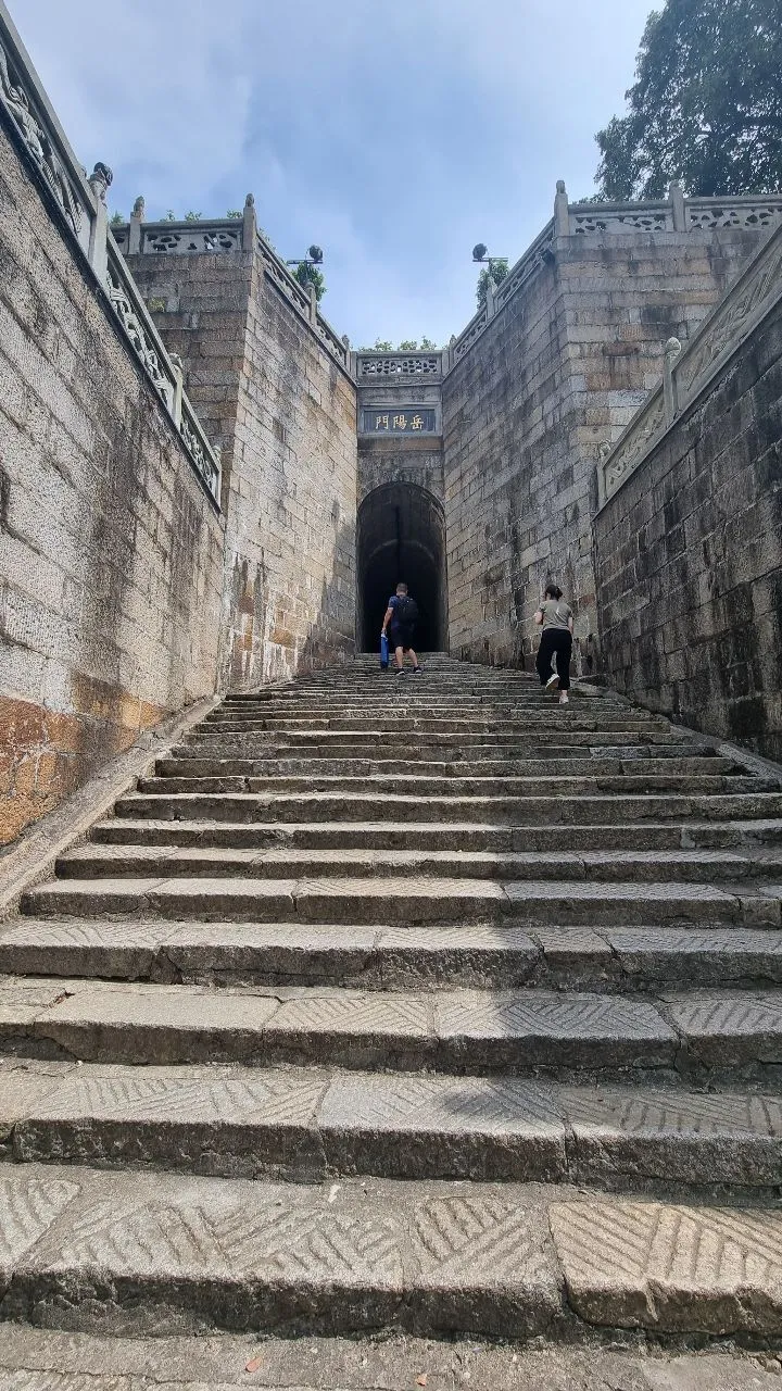 휘갈겨 쓴 듯한 특유의 글씨체로 모택동이 쓴 두보의 <등악양루>를 시작으로 여러 문인들의 시를 벽에 새긴 회랑을 지나고 임풍각(临风阁) 옆 돌계단을 오르니 동정호를 바라보며 우뚝 선 악양루의 모습이 조금씩 눈에 들어오기 시작한다.
