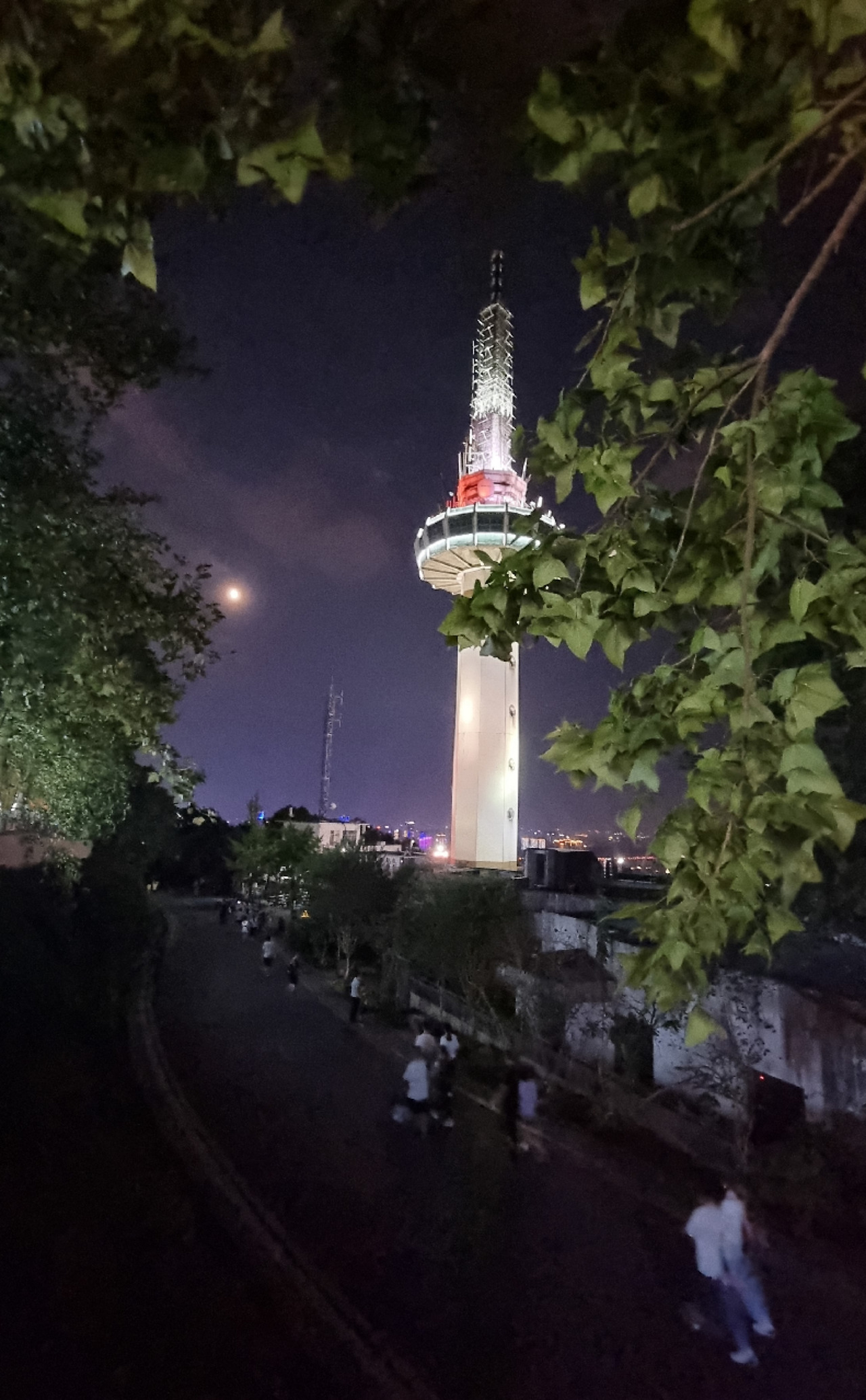식당 카페촌이 산정 북쪽을 온통 차지하고 앉아 있어 마땅한 조망처도 없다. 앞뒤로 가족 연인 친구 등 끼리끼리 짝을 지어 마주 오거나 같은 방향으로 오르는 시민들의 행렬이 끊이지 않고 이어진다.