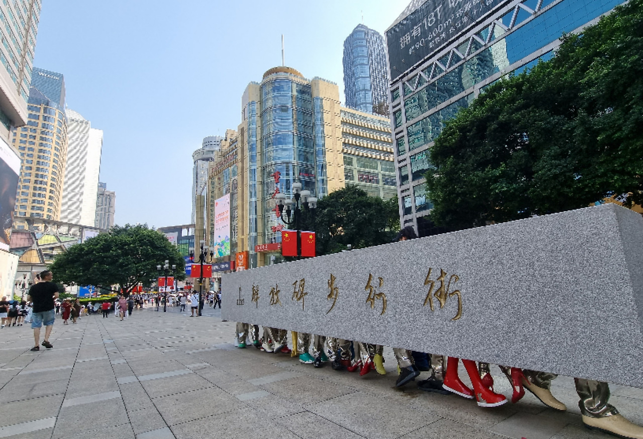 임정 청사에서 나와 굴곡진 구릉 위에 자리한 고층 건물들의 숲, 경사진 도로를 달리는 차량 행렬, 그 일상 속에서 살아가는 시민들 등 중칭의 모습을 눈에 담으며 해방비(解放碑) 보행자 거리(步行街)까지 걸어서 갔다.