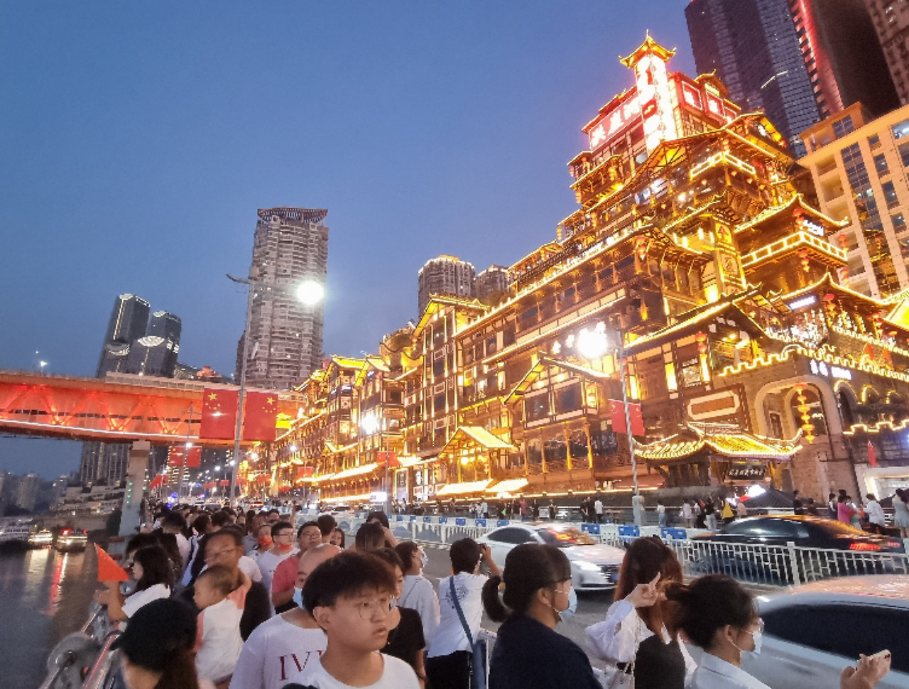 말로써는 도저히 다 묘사해 내지 못할 홍애동을 "일태(一态; 문화 레저 업태), 삼절(三绝; 吊脚楼, 集镇老街, 巴文化), 네 거리 (四街), 팔경(八景; 两江汇流, 城市阳台 등 8가지 경관)"으로 축약해서 일목요연하게 설명하는 중국인들의 친절이 고마울 따름이다. 어둠이 내릴 때까지 기다려 휘황찬란하게 불을 밝히는 홍야동의 황홀한 야경에 취해 오래도록 빠져나올 수 없었다.