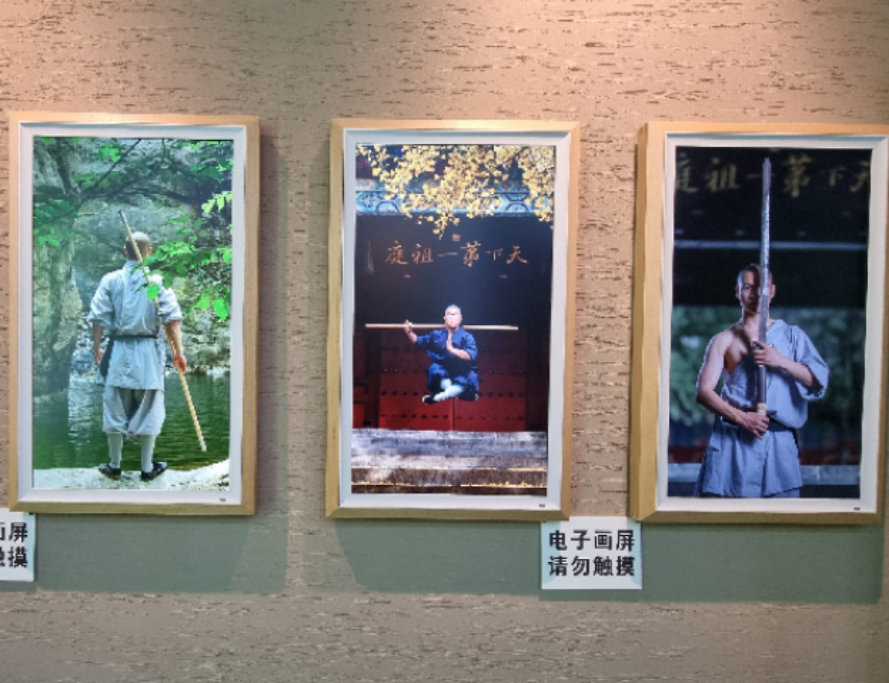방장실 옆 객당(客堂)에는 1965년생 석영신(释永信) 방장 스님이 소림사를 찾은 유명인사들과 만나는 모습을 비롯한 활동상을 담은 대형 사진들이 걸려 있고, 이곳에서 만들었다는 판매용 검도 몇 자루가 진열돼 있는데 예사롭지 않은 검기가 스려 있다. 입구 옆 출구 쪽으로 거슬러 나오며 국화차 등을 판매하는 소림 약국을 둘러보고 2시 20분경 경내를 빠져나왔다.