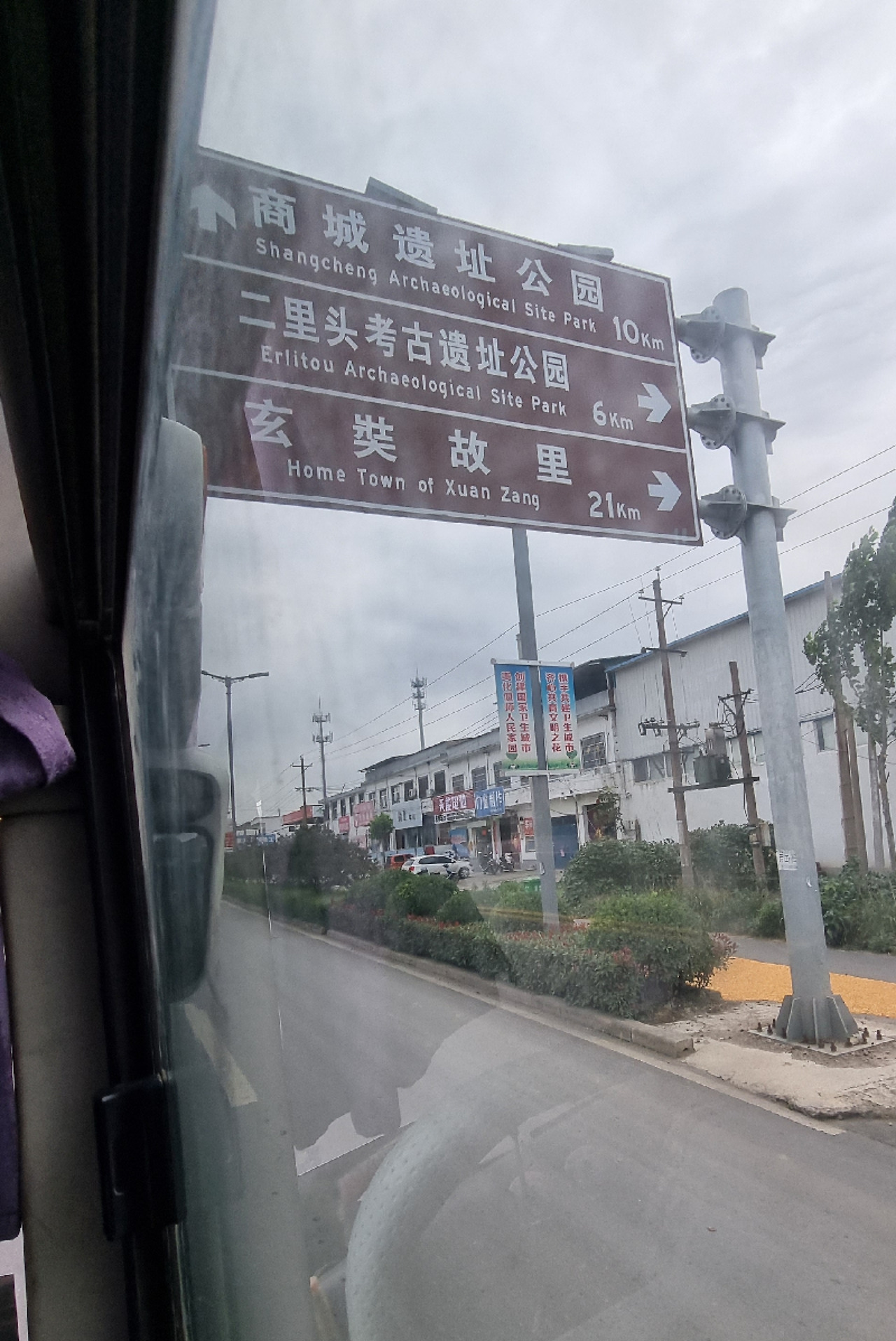 왕복 2차선 도로를 달리는 버스가 연신 경적을 울려대며 앞서 가는 느릿한 승용차와 트럭들을 추월한다. 백마사 옆을 지나 '현장 고리(玄奘故里)' 표지판을 스쳐지나고 멀찍이 물러앉은 산군에 둘러싸인 평원을 가르며 나아간다. 추수가 끝난 들판엔 누렇게 퇴색한 마른 수수깡이 늘어섰고 도로 옆 농가들 뜰마다 껍질을 벗긴 샛노란 옥수수들이 수북이 쌓여 있다.