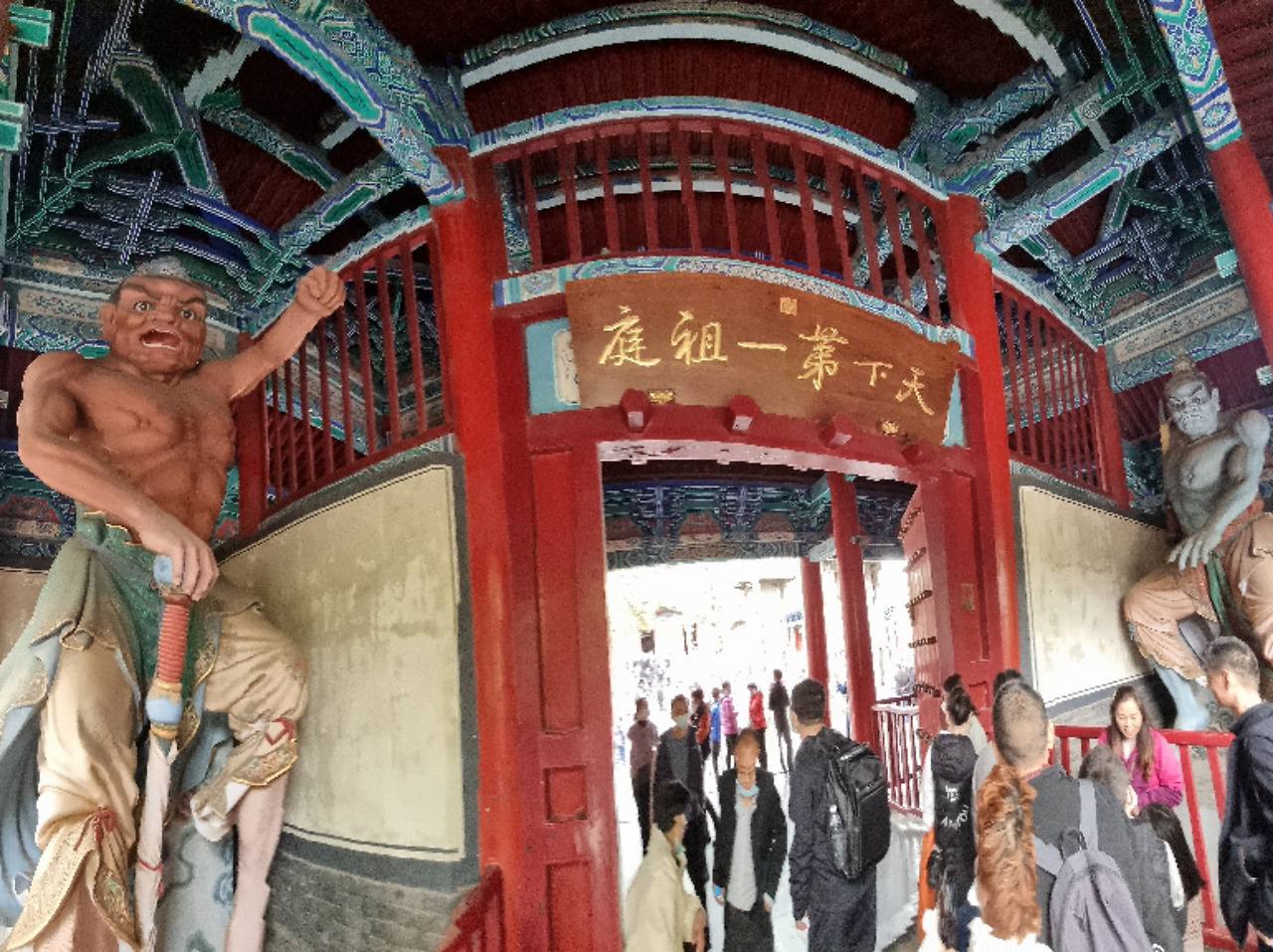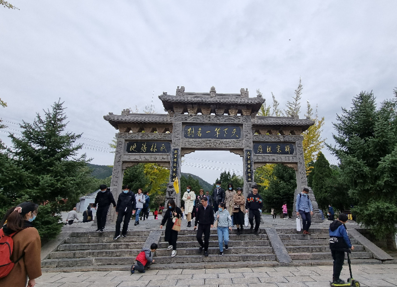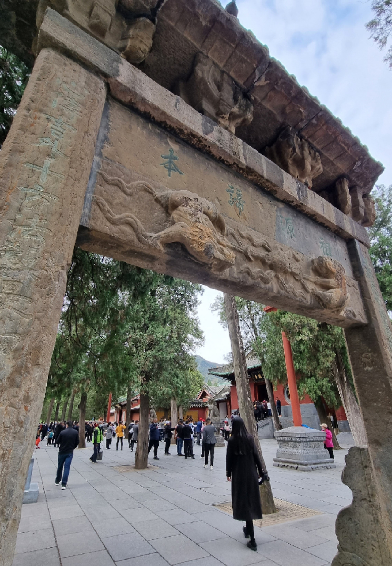 '쑹산 소림(崇山少林)' 글이 음각된 석재 패루를 지나고 입장표를 끊어 '천하제일 명찰(天下第一名刹)'이라 쓰인 일주문으로 들어섰다. '소림사(少林寺)'라는 현판이 걸린 아담한 크기의 산문으로 향하는 길 오른편 넓고 높은 계단 위에 웅장한 무술관 건물이 자리하고 있다.