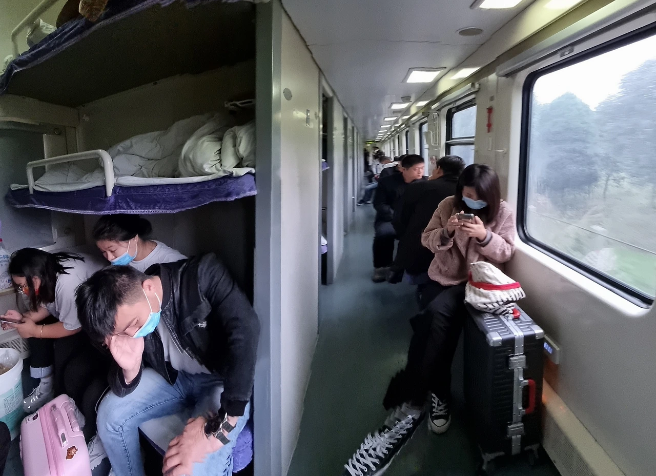 상하이를 출발해서 장쑤성을 가로질러 허난성의 개봉 정저우 뤄양을 거쳐 우루무치까지 중국 대륙의 동남쪽에서 서북쪽 가장자리로 횡단해서 달려갈 침대열차에 올랐다. 기차는 예정된 21:00에 출발했다. 10시쯤 3층 침대 2개를 마주 보게 배치한 침대열차 2등석 잉워 3층에 몸을 뉘었다.