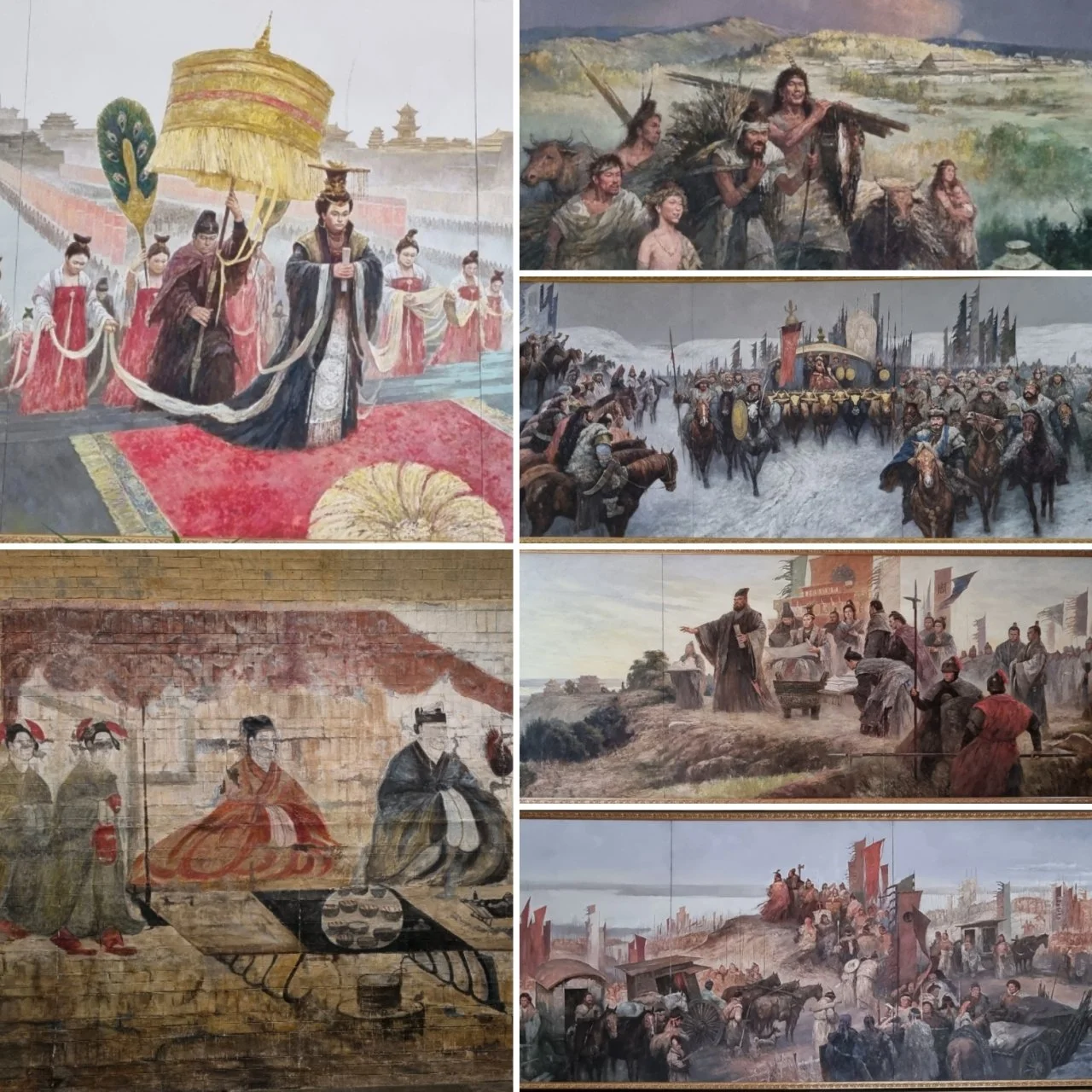 전시실 밖 복도와 홀 벽면에 걸린 역사(신화) 기록화
