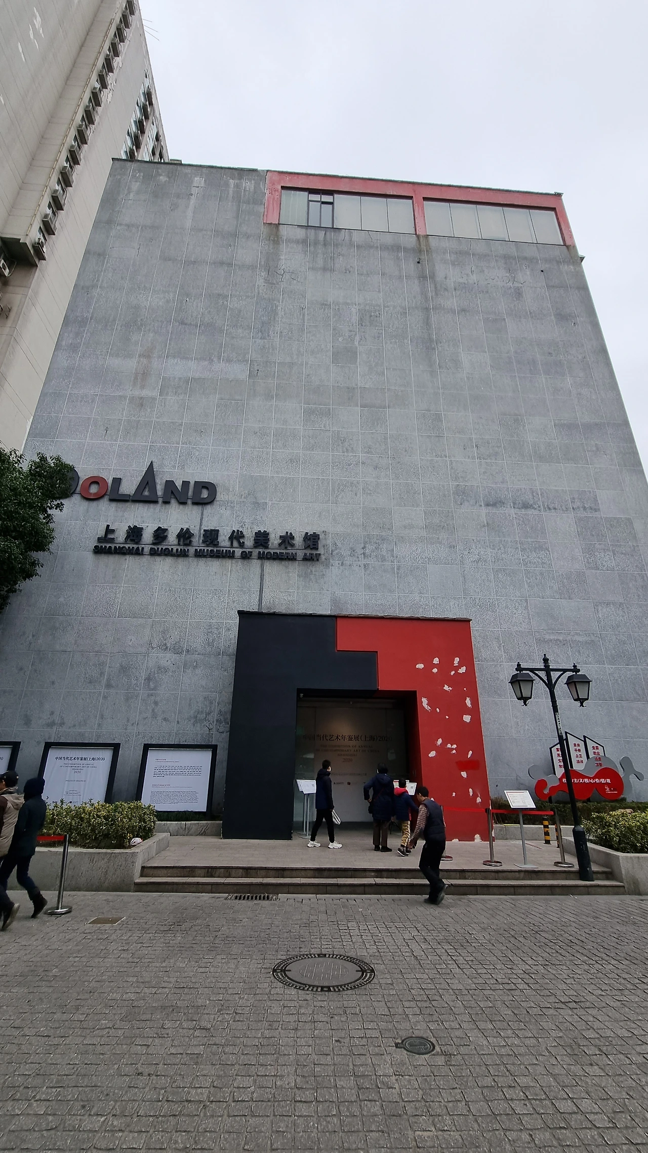 길 건너편에 보이는 '둬룬로 문화 명인가(多伦路文化名人街)'라 적힌 아치형 게이트가 눈에 들어온다. 게이트로 들어서면 좌측에 3층 높이 아담한 미술관이 있어 위챗으로 현장 예약을 하고 건강코드 확인 등 절차를 거쳐 안으로 들어섰다.